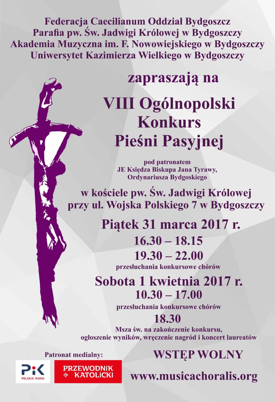 Zapraszamy do wysłuchania chórów uczestniczących w VIII Ogólnopolskim Konkursie Pieśni Pasyjnej, który odbędzie się 31 marca oraz 1 kwietnia w bydgoskim kościele św. Jadwigi Królowej.