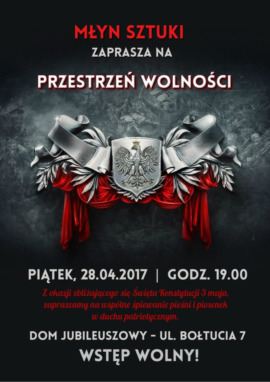 Zapraszamy na koncert z okazji 226. rocznicy uchwalenia Konstytucji 3 maja, który odbędzie się w piątek, 28 kwietnia, w Domu Jubileuszowym Jana Pawła II przy ul. Bołtucia 7 w Bydgoszczy.