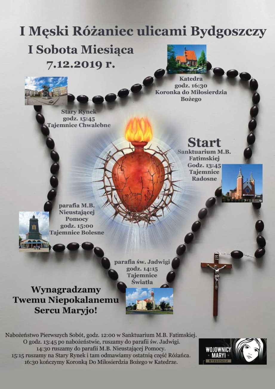 „Wojownicy Maryi” zapraszają na I Męski Różaniec ulicami Bydgoszczy. Modlitwę zaplanowano w pierwszą sobotę miesiąca – 7 grudnia.