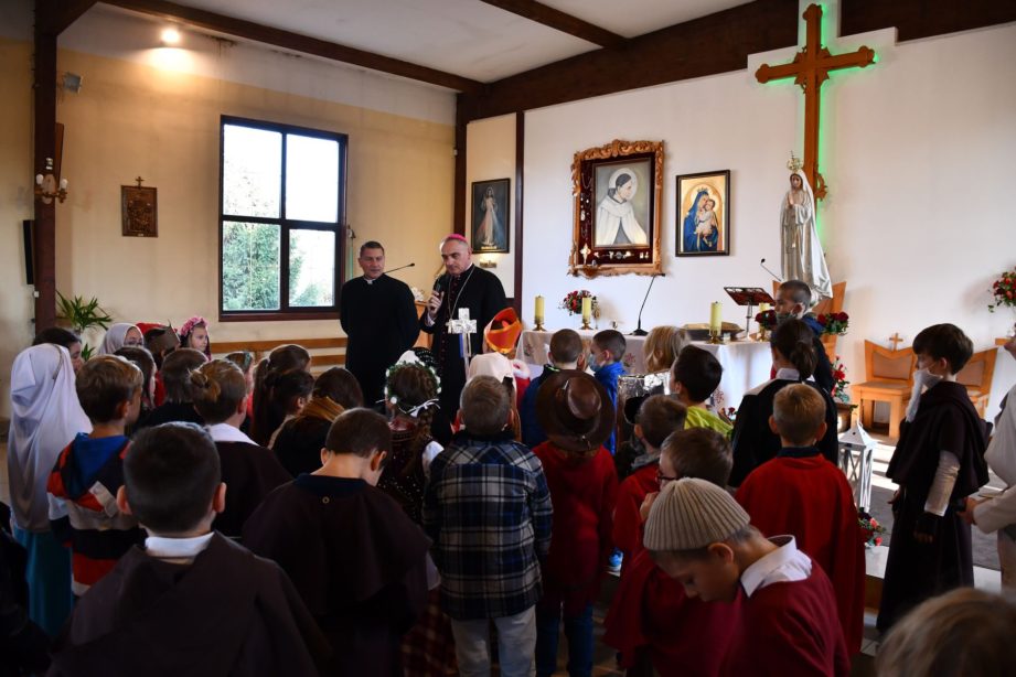 Dzieci przebrały się za takie postaci jak: św. Wojciech, św. Cecylia, św. Jadwiga Królowa, św. Klara, św. Jakub, św. Monika, czy św. Ojca Pio. – Dziękuję za spotkanie i modlitwę. Za to, że mogłem z wami wejść w tę wielką uroczystość Wszystkich Świętych. To okazja do tego, by nie tylko pokazać, jak święci wyglądali, ale poznanie ich życia. Wciąż od nich się uczymy, jak kroczyć przez życie – dodał bp Włodarczyk. – To nasze chrześcijańskie antidotum na obce naszej kulturze i niebezpieczne „Halloween”, które zostało przejęte z magicznych oraz satanistycznych kultów celtyckich. Irlandzcy emigranci zawieźli je do Ameryki, skąd teraz wracają do nas, jako symbol nowoczesności – dodał proboszcz ks. Ireneusz Kalaczyński.