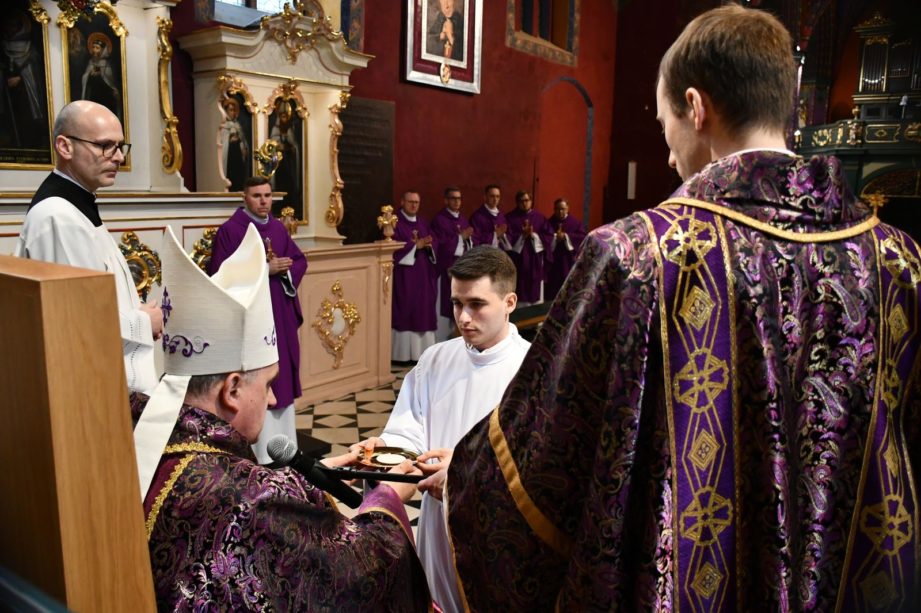„Radujmy się, że mamy Eucharystię oraz tych, którzy do jej sprawowania się przygotowują” – mówił w katedrze biskup Krzysztof Włodarczyk, który udzielił klerykowi posługi akolitatu.