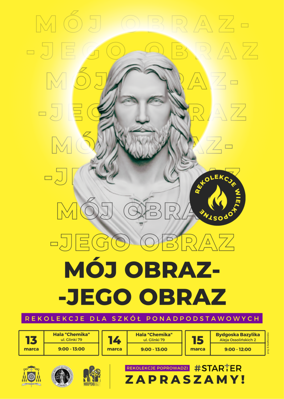 „Mój obraz – Twój obraz” – to temat tzw. rekolekcji centralnych, które od 13 do 15 marca odbywać się będą w Bydgoszczy. Są one kierowane do uczniów szkół ponadpodstawowych całego miasta. Dwa pierwsze dni przeżywane będą na hali „Chemika” (ul. Glinki). Ostatniego dnia wszyscy zgromadzą się w bazylice św. Wincentego a Paulo, by z biskupem Krzysztofem Włodarczykiem wpatrywać się w to prawdziwe oblicze Chrystusa.