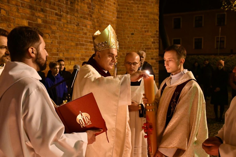 W katedrze sprawowana będzie o godzinie 21.00 pod przewodnictwem bp Krzysztofa Włodarczyka. Rozpocznie ją Liturgia Światła. Celebrans na zewnątrz kościoła poświęci ogień, od którego następnie zapalony zostanie paschał. Na paschale kapłan żłobi znak krzyża, wypowiadając słowa: „Chrystus wczoraj i dziś, początek i koniec, Alfa i Omega. Do Niego należy czas i wieczność, Jemu chwała i panowanie przez wszystkie wieki wieków. Amen”. Umieszcza na świecy również pięć czerwonych gwoździ symbolizujących rany Chrystusa oraz aktualną datę. Następnie paschał wnoszony jest do nieoświetlonego kościoła, a wierni zapalają od niego swoje świece. Tej nocy po blisko pięćdziesięciu dniach powraca uroczysty śpiew „Alleluja”. Po liturgii Słowa celebrans dokonuje poświęcenia wody, która przez cały rok służyć będzie przy udzielaniu sakramentu chrztu. Wigilia Paschalna kończy się Eucharystią i procesją rezurekcyjną, by oznajmić, że Chrystus zmartwychwstał i zwyciężył śmierć.