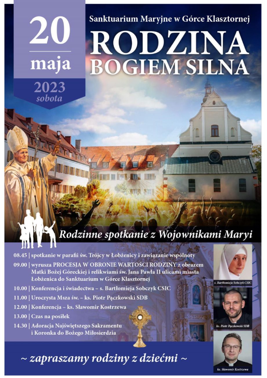 Zapraszamy 20 maja do sanktuarium w Górce Klasztornej na spotkanie rodzinne z Wojownikami Maryi do wspólnej modlitwy w intencji polskich rodzin.