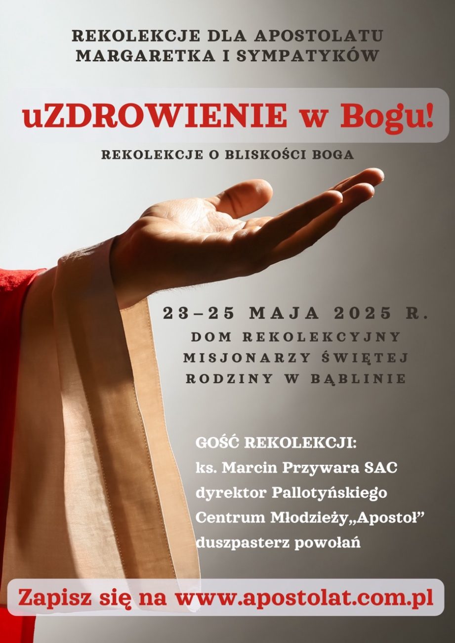 Temat tegorocznych rekolekcji to „uZDROWIENIE w Bogu”. Termin: 23-25 maja 2025 r.