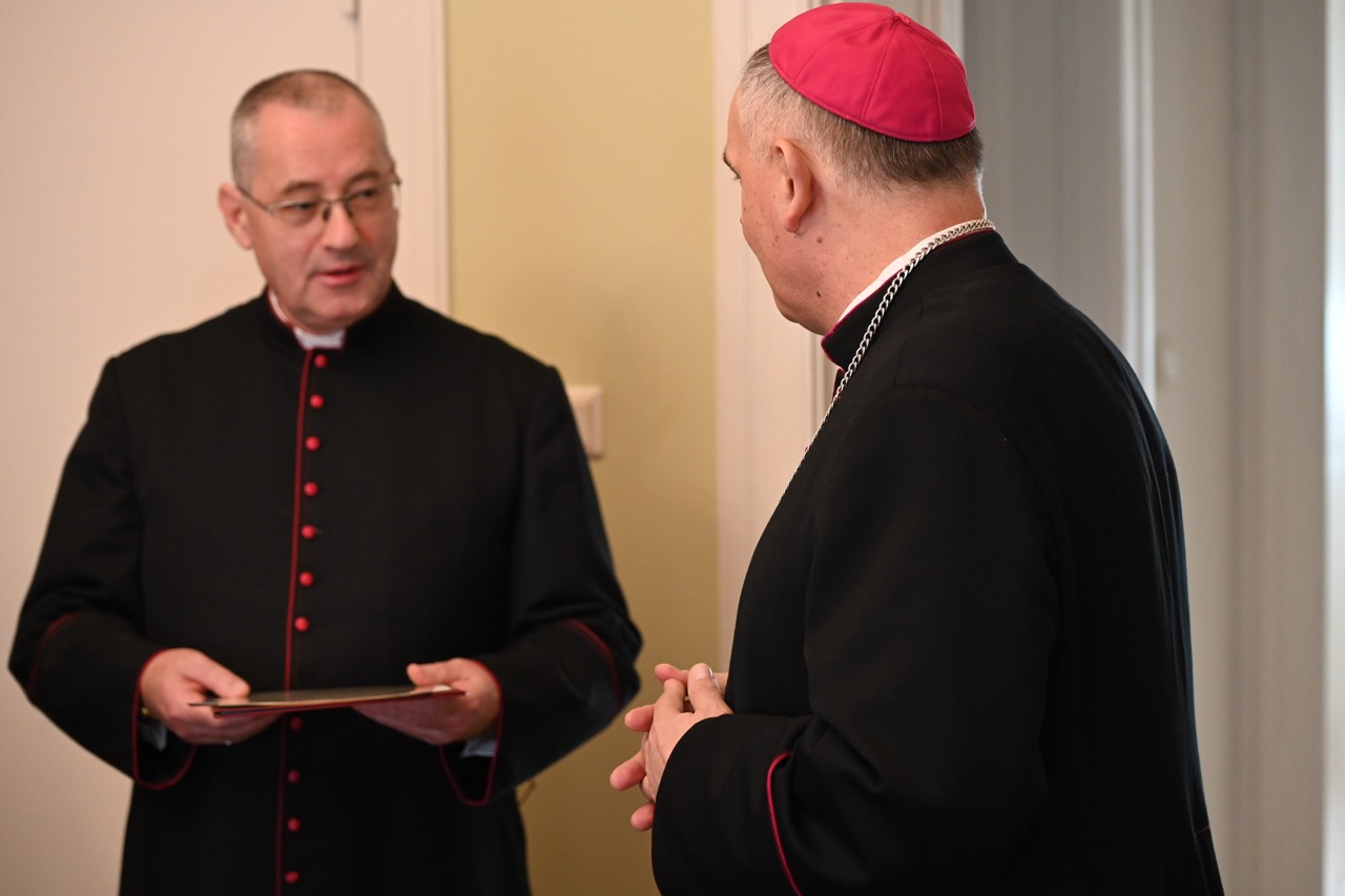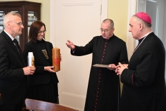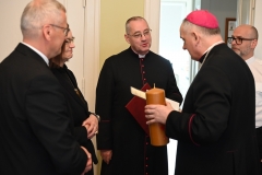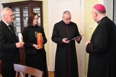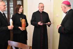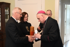 Wśród przybyłych gości znaleźli się: ks. kanonik Mirosław Pstrągowski – od 9 lat kawaler zakonu, proboszcz parafii św. Łukasza Ewangelisty i św. Rity w Bydgoszczy, Barbara Świdurska – od 2 lat dama zakonu oraz Jacek Pytlik – od 2 lat kawaler Zakonu Rycerskiego Świętego Grobu w Jerozolimie. – Dziękuję za życzliwość serca, ten szczególny dar, jaki zostanie wykorzystany podczas Mszy Krzyżma Świętego. Będzie miał swój udział w dalszym przeżywaniu sakramentów w naszej diecezji – powiedział bp Krzysztof Włodarczyk.