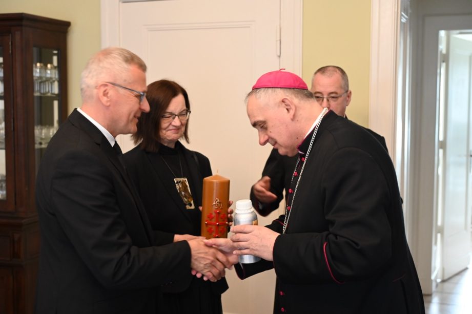 Do daru dołączono list od Zwierzchnika Zakonu, komandora dr. Andrzeja Sznajdera CSSH i przekazano święcę paschalną. „Olejek został zakupiony kilkanaście dni temu w Jerozolimie. Pragniemy, aby poprzez ten dar umocnić więź naszych Kościołów lokalnych z Kościołem w Jerozolimie, który jest nazywany „Mater omnium Ecclesiarium”, czyli „Matką wszystkich Kościołów” – napisał zwierzchnik. Przypomniał jednocześnie, że od października 2023 roku Ziemia Święta ogarnięta jest wojną. „W imieniu wszystkich mieszkańców Ziemi Świętej – w szczególności naszych braci chrześcijan – prosimy o modlitwę w intencji sprawiedliwego pokoju” – dodał. – Mamy świadomość tej sytuacji, przywołujmy więc Jezusa Chrystusa, by wylewał pokój najpierw w sercach tych sióstr i braci, a także na tamtej ziemi – powiedział bp Włodarczyk.