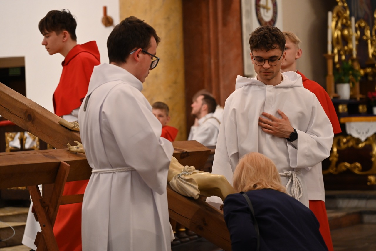 Ordynariusz nawiązał do dokonania aborcji w Oleśnicy – w 36. tygodniu ciąży. – Zastanawiałem się tu, przy krzyżu, jak ja mogę zareagować na to, co stało się z tym dziewięciomiesięcznym Felusiem? Czy mogę spokojnie przejść i posłuchać pani doktor, która mówi, że ona nic złego nie zrobiła, po prostu wykonała czynność medyczną. To mnie porusza, bo o tego najbardziej potrzebującego trzeba się teraz upomnieć – mówił, podkreślając, że nie można stać z wiarą i współczuciem pod krzyżem Jezusa, uciekając od przydrożnych, ludzkich krzyży. – Przydrożnych, czyli stojących obok mojej drogi. Ewangelia wywraca świat do góry nogami. Bóg nie mieszka już w górze, ale na dole, pośród najmniejszych. By Go tam odnaleźć, trzeba iść drogą w dół. Jest to testament Pana Jezusa z krzyża dla nas, dla mnie. Jak na niego odpowiem, jak będę nim żył, akie jest moje „pragnę”, jaka jest miara mojego „umiłowania” Boga i drugiego człowieka? – Prośmy ukrzyżowanego i zmartwychwstałego Pana, by naszym „pragnieniem” było „umiłowanie do końca” – zakończył bp Krzysztof Włodarczyk.