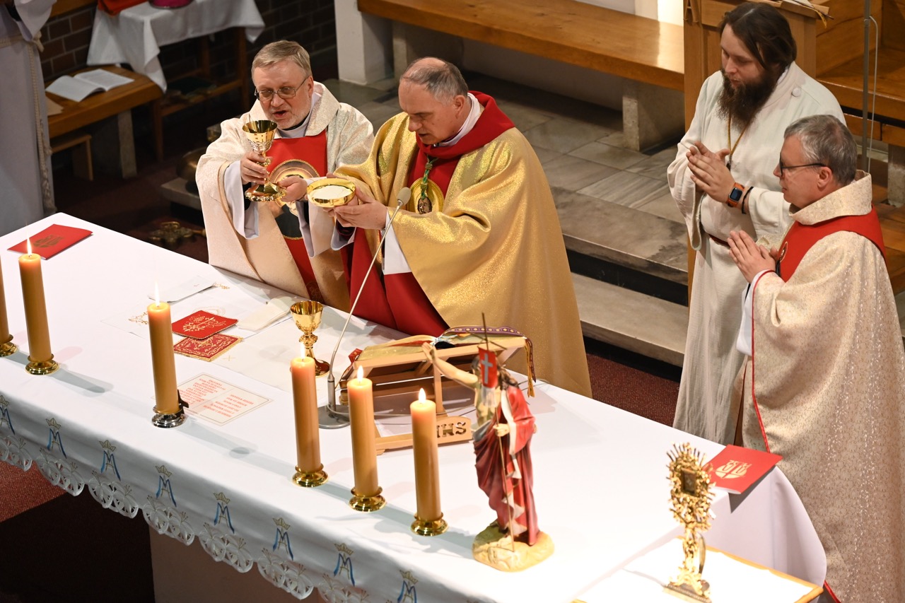 Na istniejącą już jedność w różnorodności w Trójjedynym Bogu wskazuje, jak dodał biskup, modlitwa Jezusa z Ostatniej Wieczerzy. – Zadaniem ludzi jest więc tę jedność przyjąć, a nie ją wymyślać – mówił, dodając, że szczególnym miejscem budowania jedności, która zstępuje z nieba, jest świadomy i pokorny udział w Komunii św. – Przyjmujemy ten sam pokarm, którym jest prawdziwy Bóg, uzdalniający nas do tego, byśmy podobną komunię tworzyli między sobą. Taką jedność opartą na miłości ukazał święty Andrzej Bobola. Ten święty patron pragnął zgromadzić ludzi w jednym Kościele Chrystusa. Cierpiał z powodu podziału chrześcijan. Bolał nad tym, że z powodu ludzkiej pychy rozdarto jedyną szatę Chrystusa. Święty Andrzej pragnął, by znowu nastała jedna owczarnia i jeden pasterz. Stał się męczennikiem jedności Chrystusowego Kościoła. Tych, do których nie dotarł przez słowo, pozyskał przez przelaną krew – zakończył bp Krzysztof Włodarczyk.