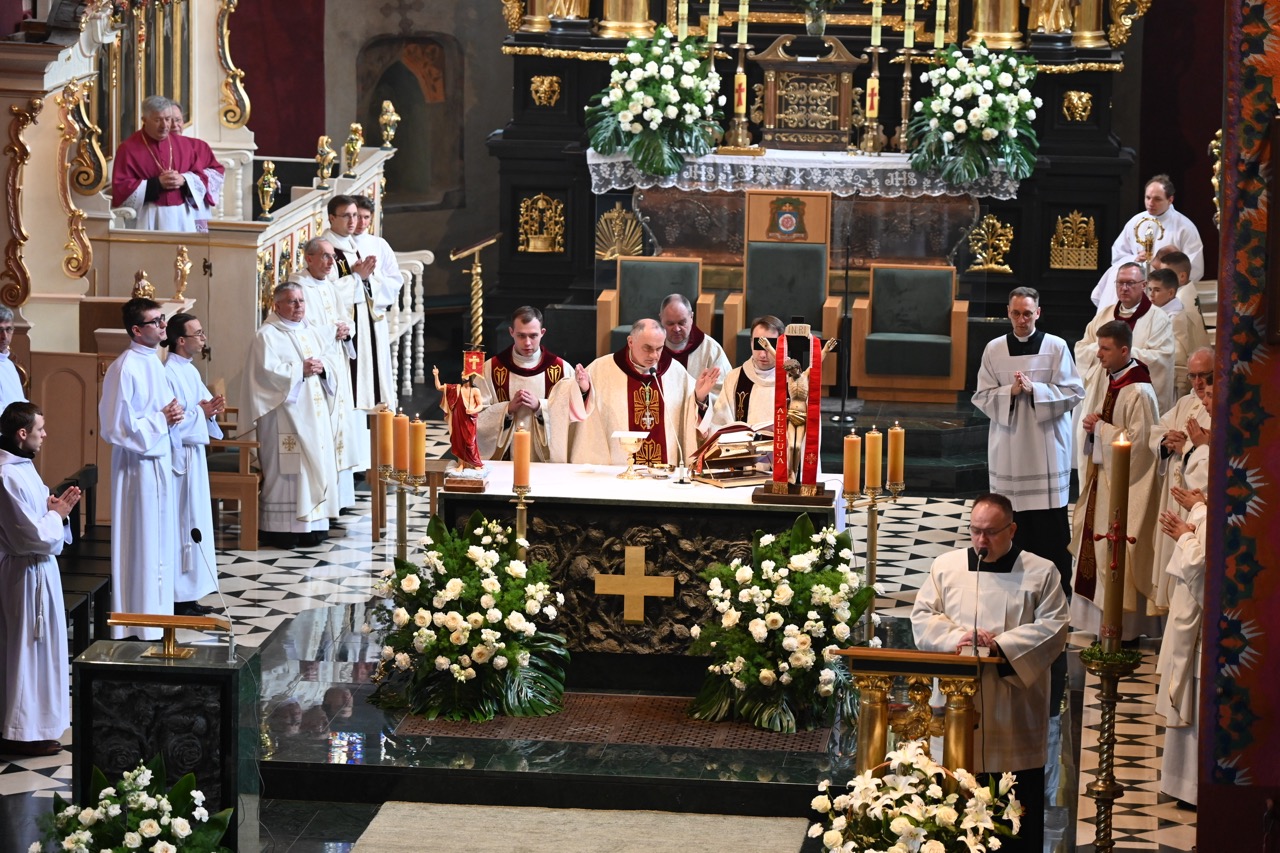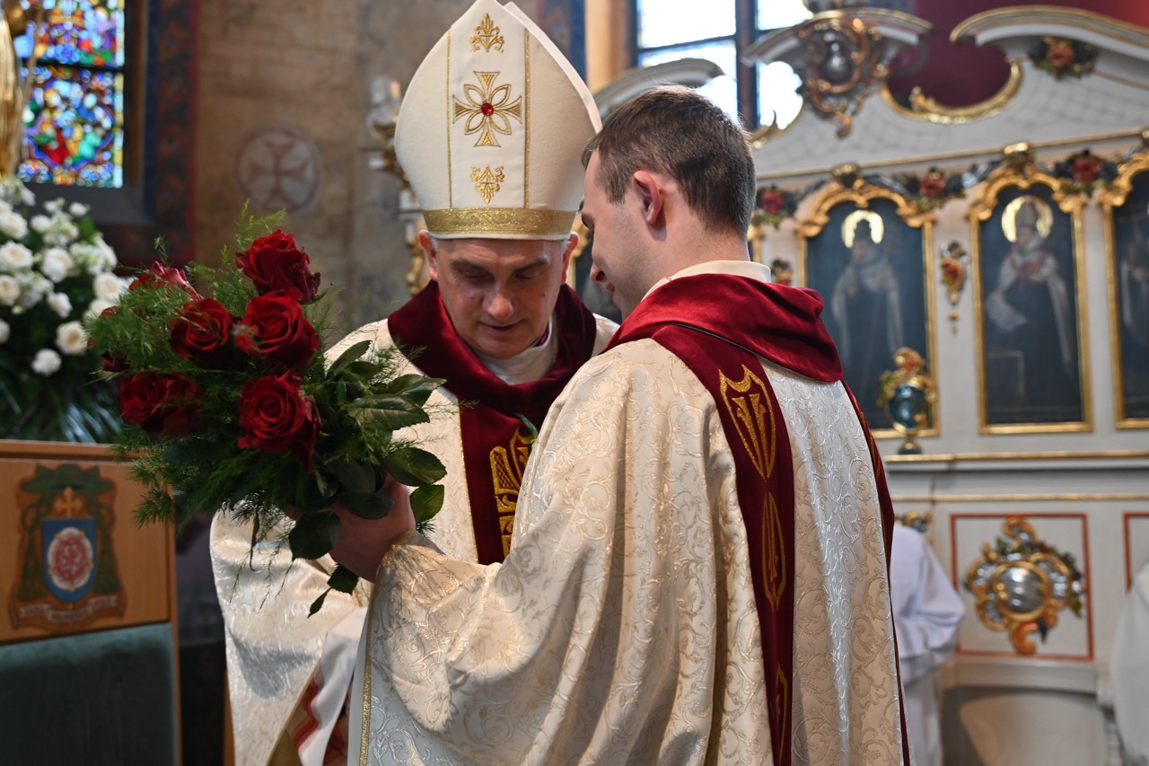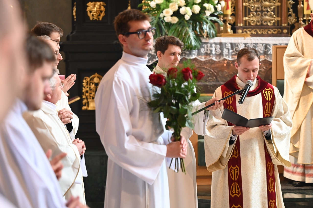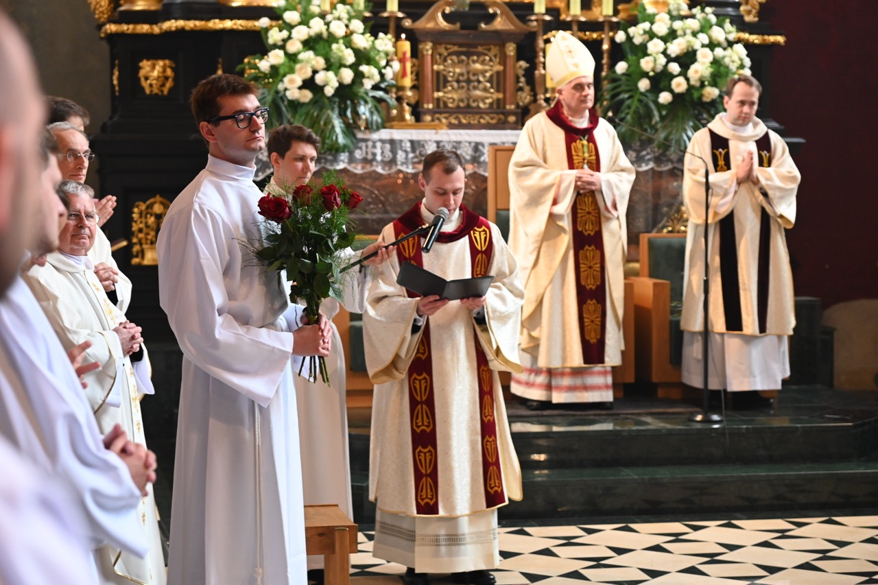 Diakon – jak zauważył biskup – staje przy Krzyżu Chrystusa, by dawać świadectwo wiary. Młody sługa Chrystusa – zaznaczył – ma prowadzić ludzi do nieba, wartości nadprzyrodzonych. Ma to odbywać się nie przez slogany, lecz przez świadectwo. – Kandydat do święceń diakonatu, przedstawiony wspólnocie Kościoła, odpowiada: „Jestem”. Jest to forma odpowiedzi na Boże powołanie i wyrażenie gotowości do pójścia tam, gdzie posyła Chrystus, by nieść posłanie nadziei. Obok nas jest wiele dobra i piękna, jak piękno tego młodzieńczego diakońskiego serca, które włączy się w rozsiewanie nadziei w świecie – dodał.
