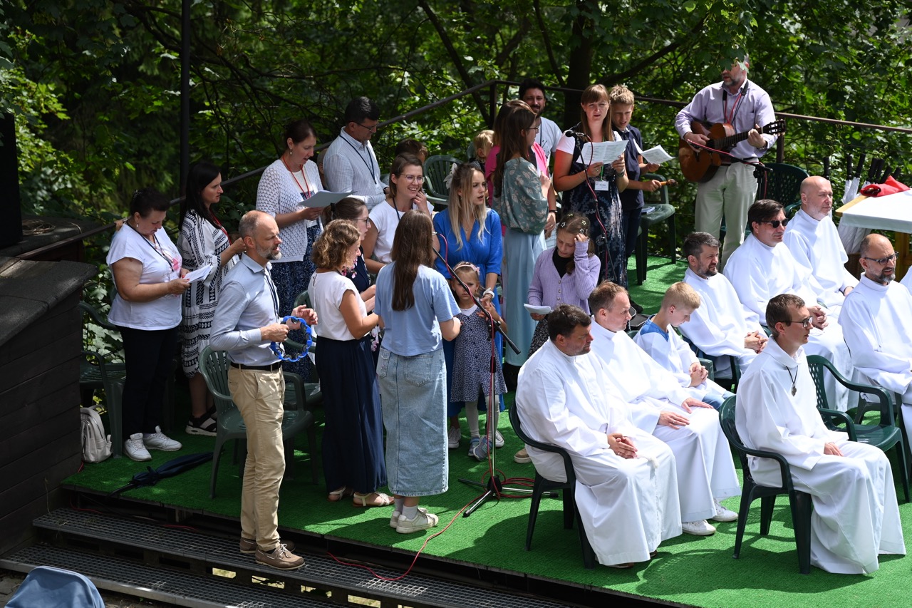 Wieczernik stał się miejscem modlitwy dla członków Ruchu Światło-Życie z różnych stron Polski, i spoza jej granic. – Dla nas to źródło, z którego czerpiemy. To także ważny dzień w czasie rekolekcji piętnastodniowych. Trzynasty to zawsze Zesłanie Ducha Świętego, czas jedności z całym Kościołem – mówią Agnieszka i Marcin z diecezji warszawsko-praskiej, którzy przyjechali ze swoimi dziećmi – Anielką, Marcysią, Antosiem i Rozalką. – Jezus powiedział: „Idźcie na cały świat i głoście Ewangelię wszelkiemu stworzeniu. Posłany nigdy nie jest sam – mówił w homilii biskup Krzysztof Włodarczyk.