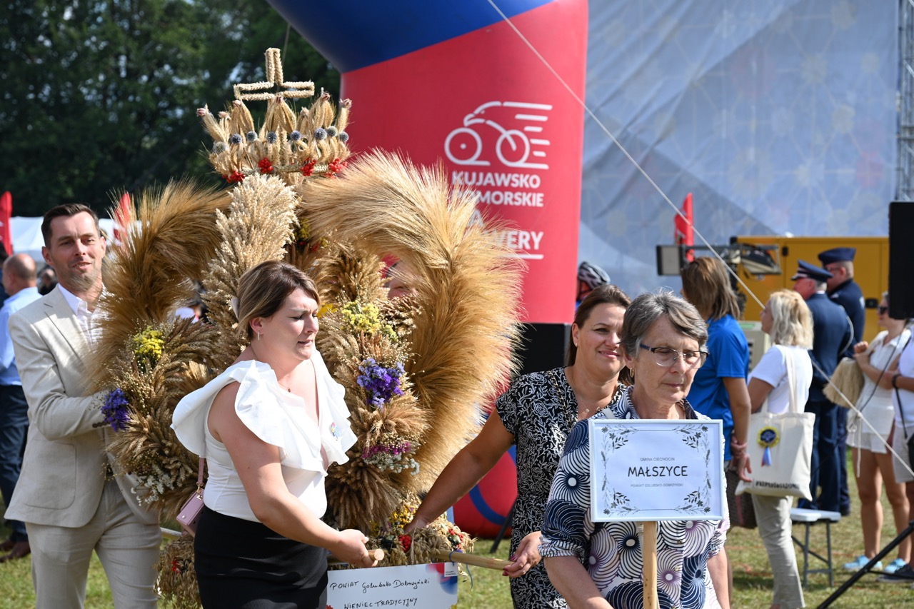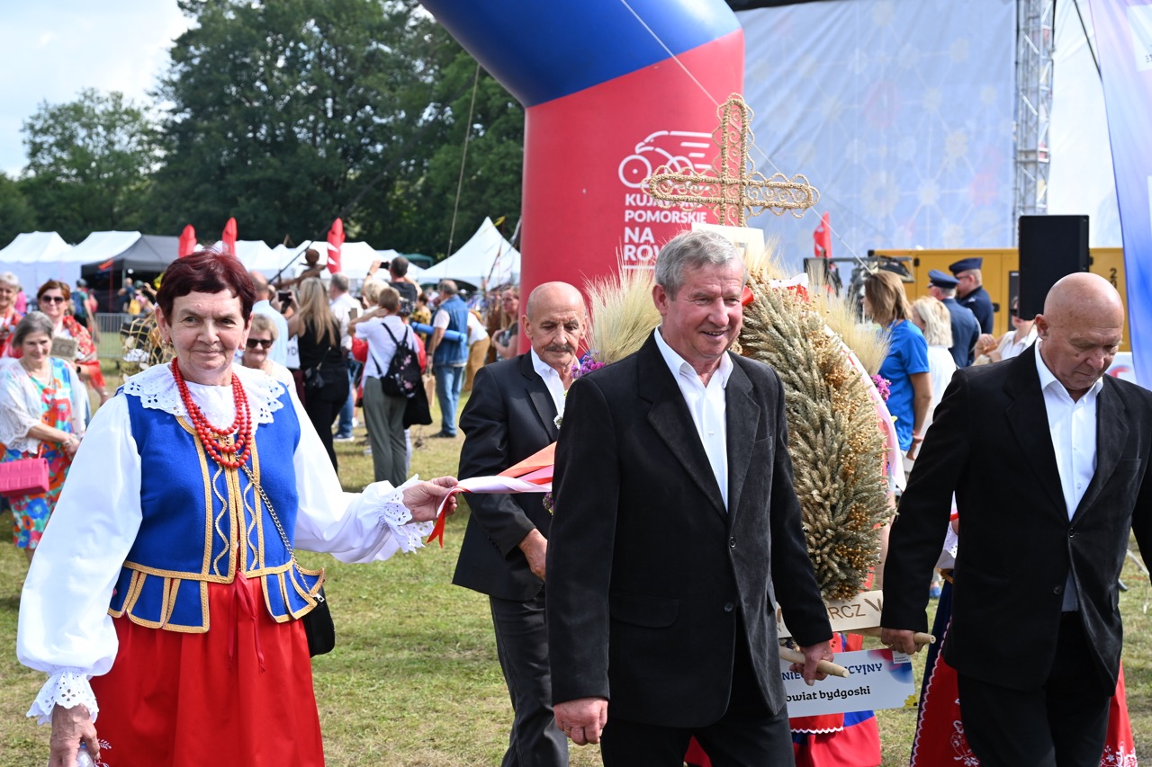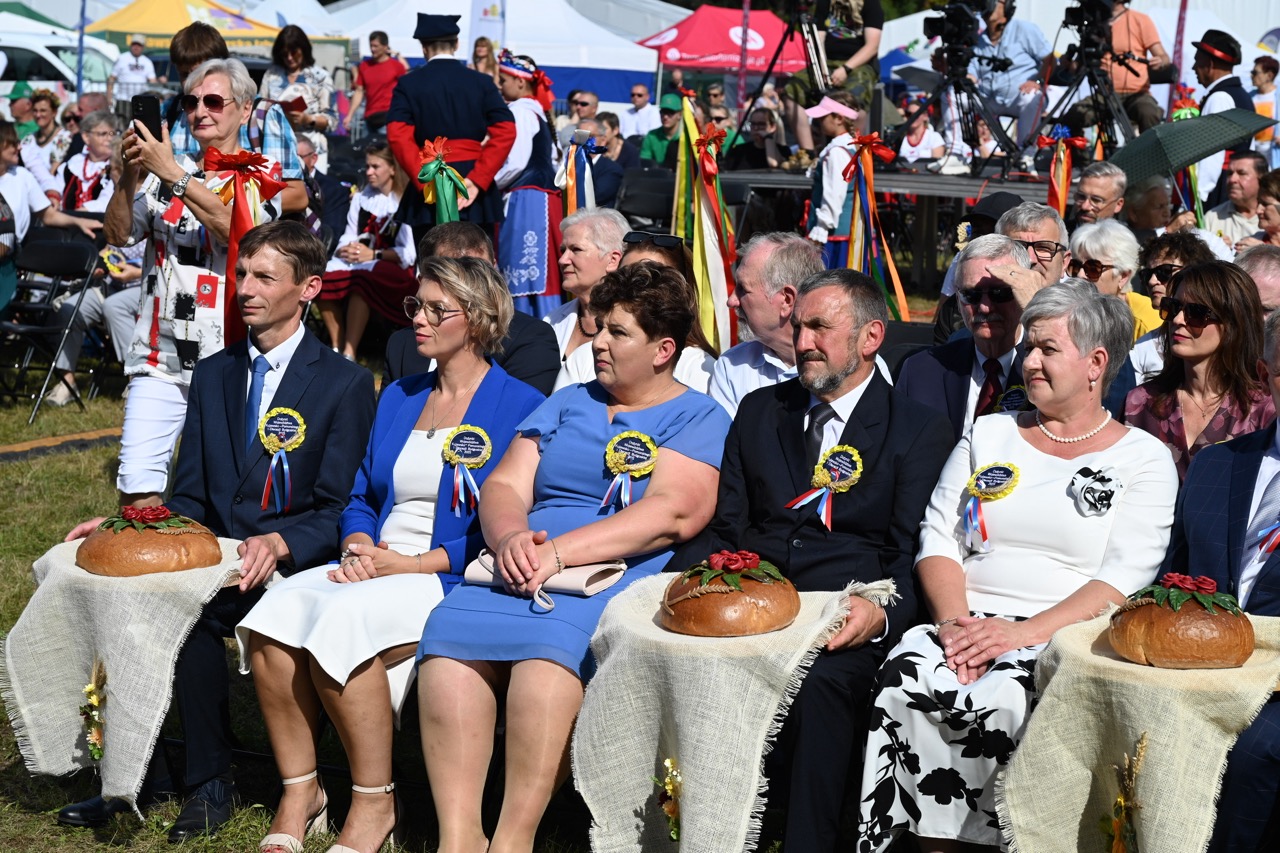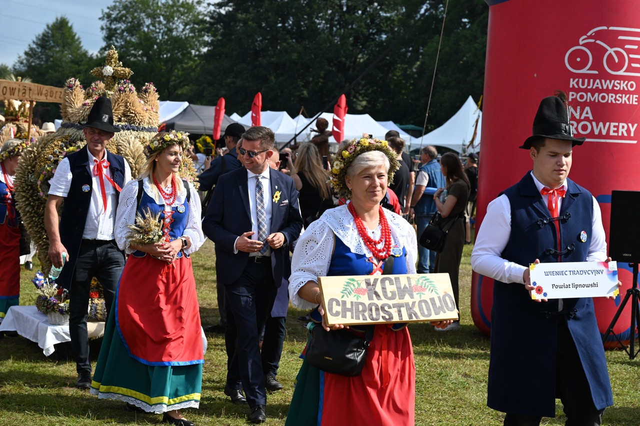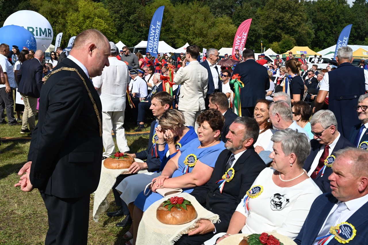 W dożynkach uczestniczyli marszałek Piotr Całbecki, przewodnicząca sejmiku województwa Elżbieta Piniewska, członkowie zarządu województwa, radni, parlamentarzyści, przedstawiciele administracji rządowej, samorządowcy i reprezentacje wiejskich społeczności. Nie zawiedli również mieszkańcy. – Dzisiejsze święto jest okazją, by podkreślić, jak ciężka i wymagająca jest praca na roli. My wiemy, że w rolnictwie nie ma czegoś takiego, jak łatwy rok – ponieważ bezustannie mierzymy się z problemami i wyzwaniami. Właśnie dlatego rolnicy, rolniczki i ich rodziny to silni, twardzi ludzie, którzy wiedzą, jak ważną dla całego społeczeństwa pracę wykonują – mówił, zabierając głos w imieniu kujawsko-pomorskich rolników, starosta dożynek – Krzysztof Tarlach.