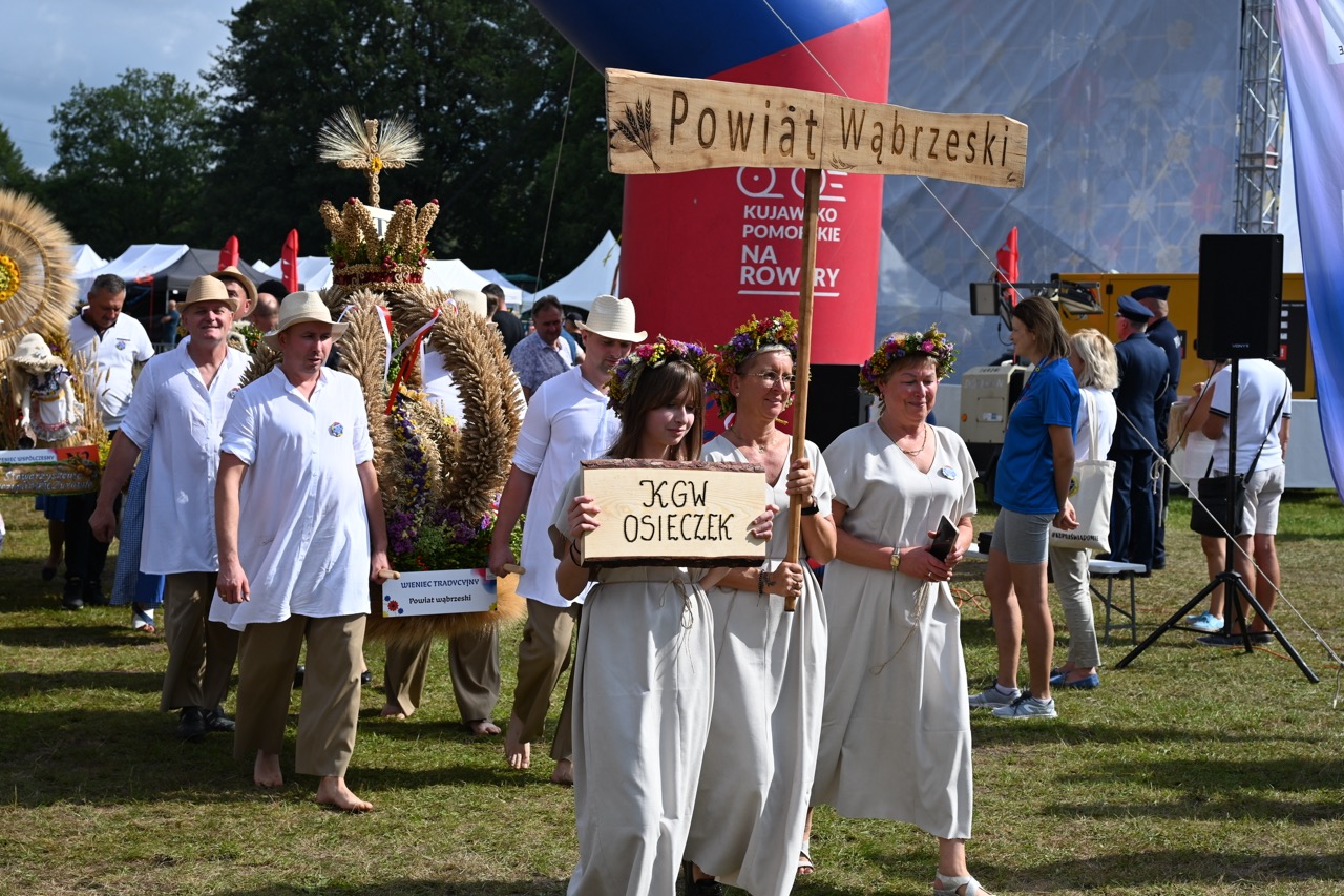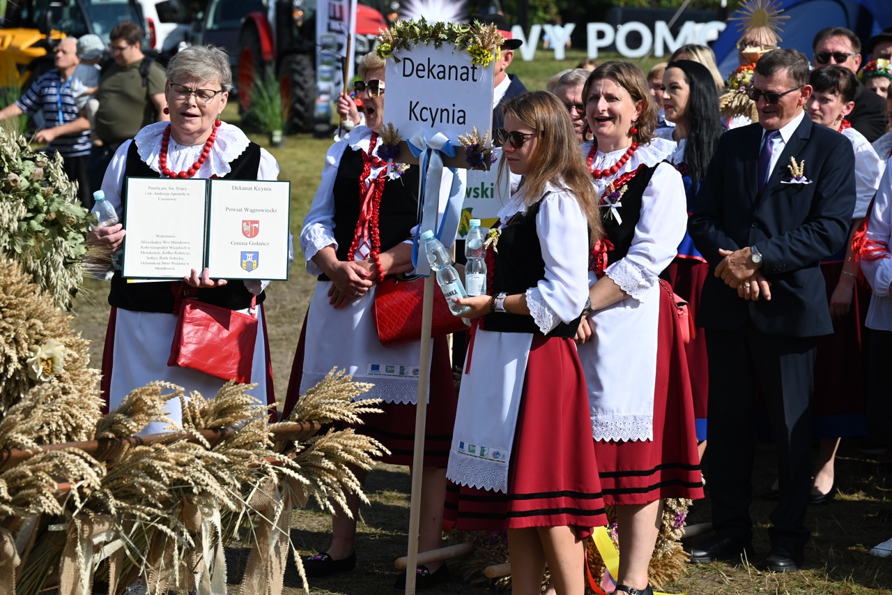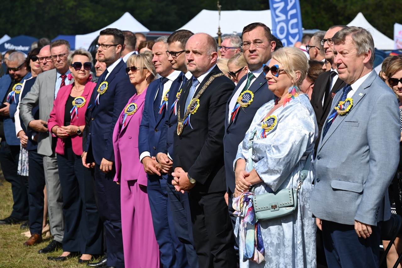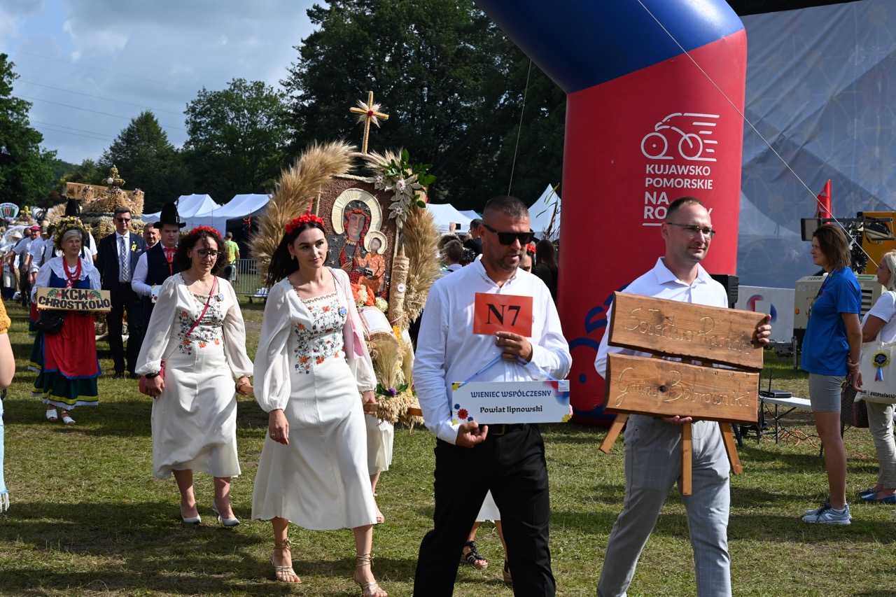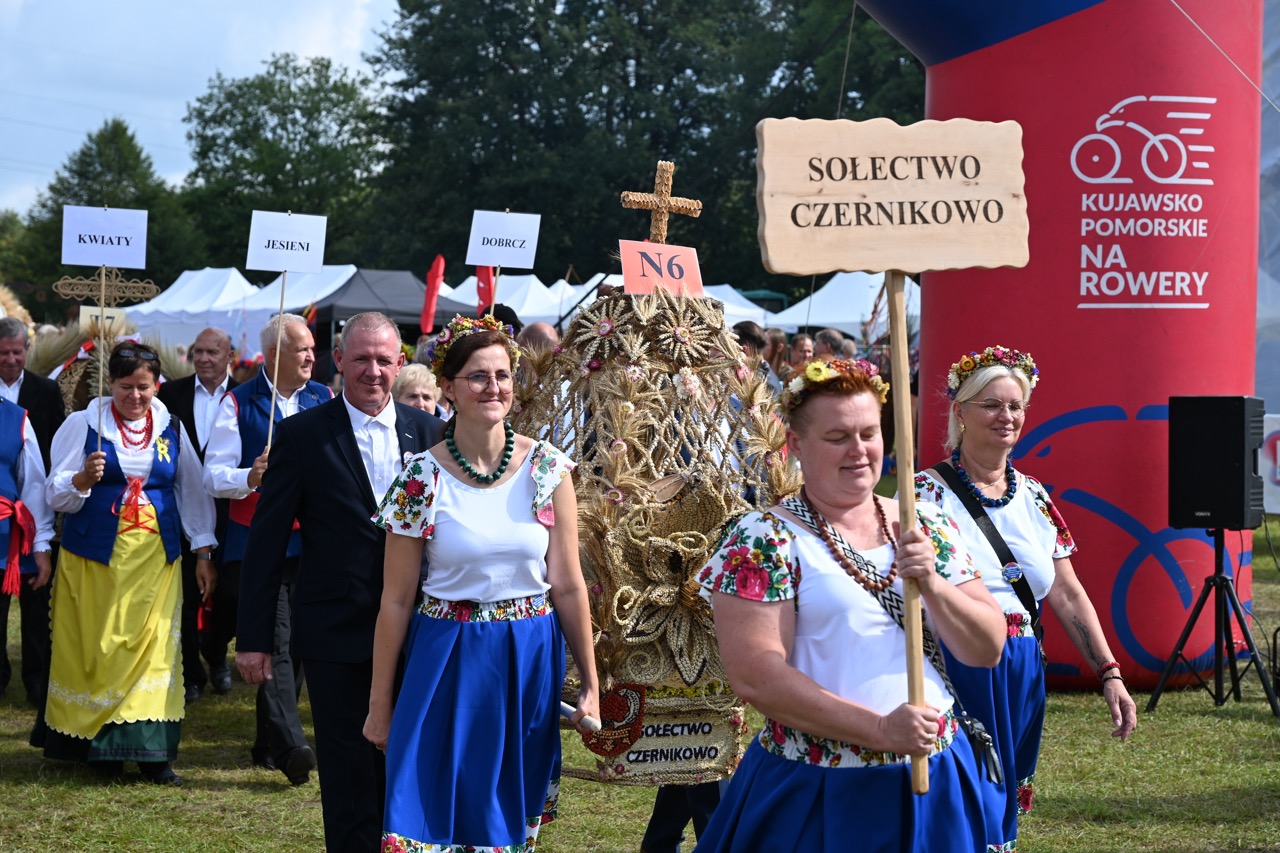 W dożynkach uczestniczyli marszałek Piotr Całbecki, przewodnicząca sejmiku województwa Elżbieta Piniewska, członkowie zarządu województwa, radni, parlamentarzyści, przedstawiciele administracji rządowej, samorządowcy i reprezentacje wiejskich społeczności. Nie zawiedli również mieszkańcy. – Dzisiejsze święto jest okazją, by podkreślić, jak ciężka i wymagająca jest praca na roli. My wiemy, że w rolnictwie nie ma czegoś takiego, jak łatwy rok – ponieważ bezustannie mierzymy się z problemami i wyzwaniami. Właśnie dlatego rolnicy, rolniczki i ich rodziny to silni, twardzi ludzie, którzy wiedzą, jak ważną dla całego społeczeństwa pracę wykonują – mówił, zabierając głos w imieniu kujawsko-pomorskich rolników, starosta dożynek – Krzysztof Tarlach.