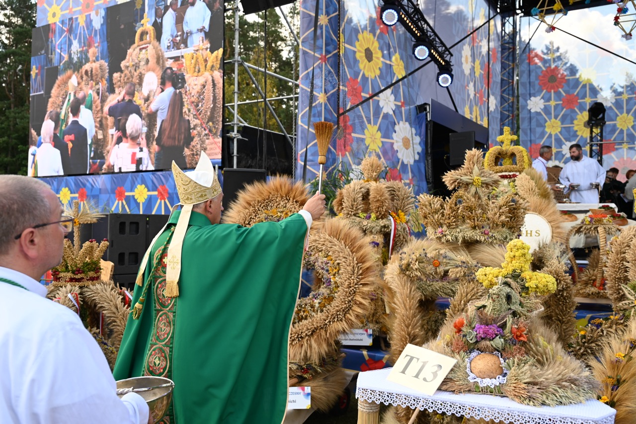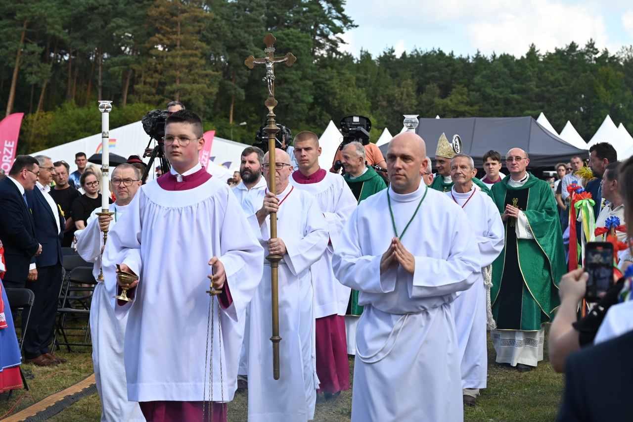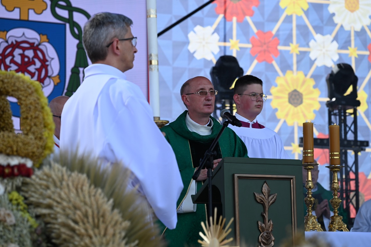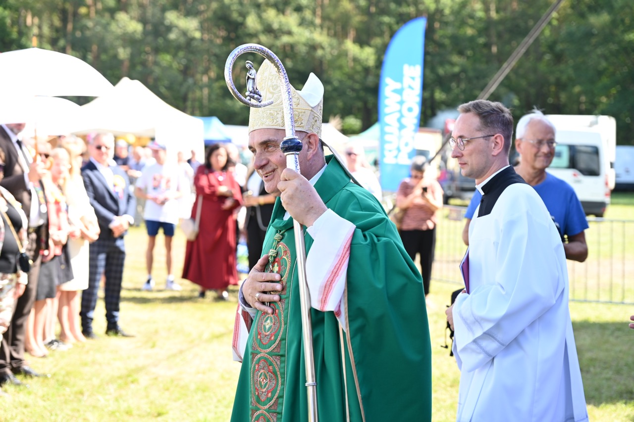 „Trzeba, byśmy z ufnością popatrzyli na naszą, polską ziemię, ojcowiznę, która ciągle rodzi chleb” – mówił biskup Krzysztof Włodarczyk na Polanie Różopole w Leśnym Parku Kultury i Wypoczynku w Myślęcinku w Bydgoszczy.