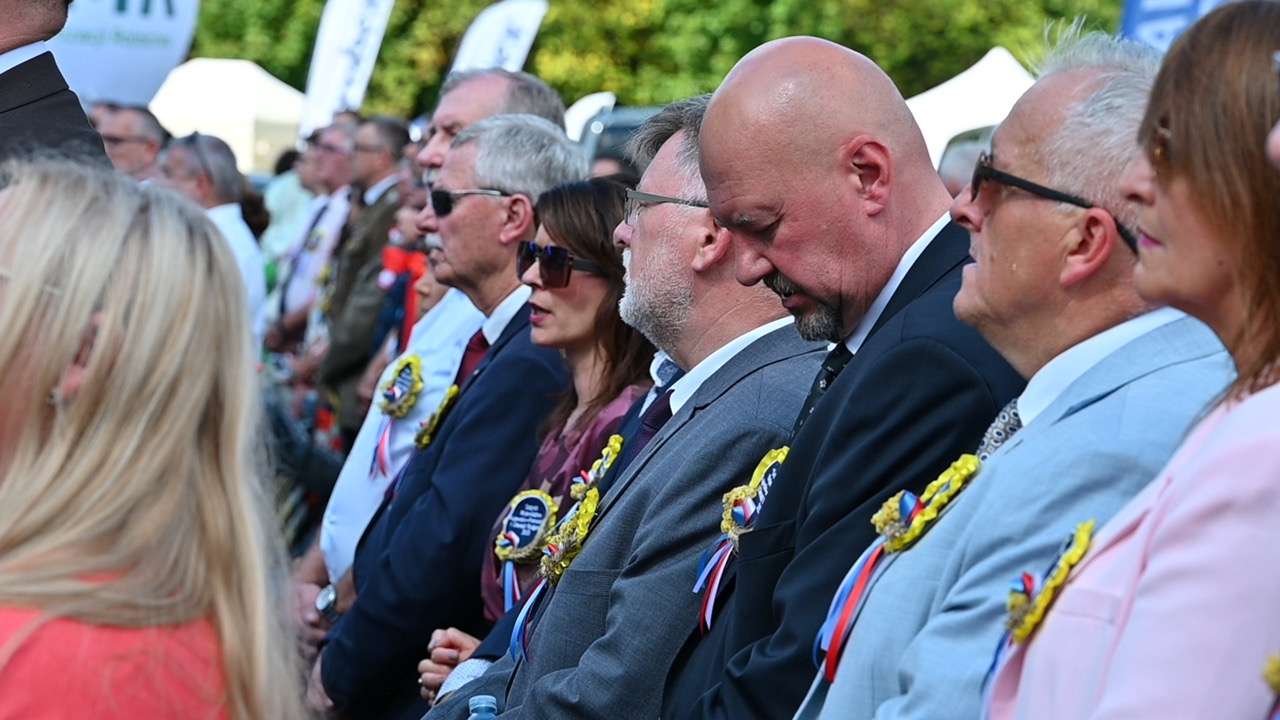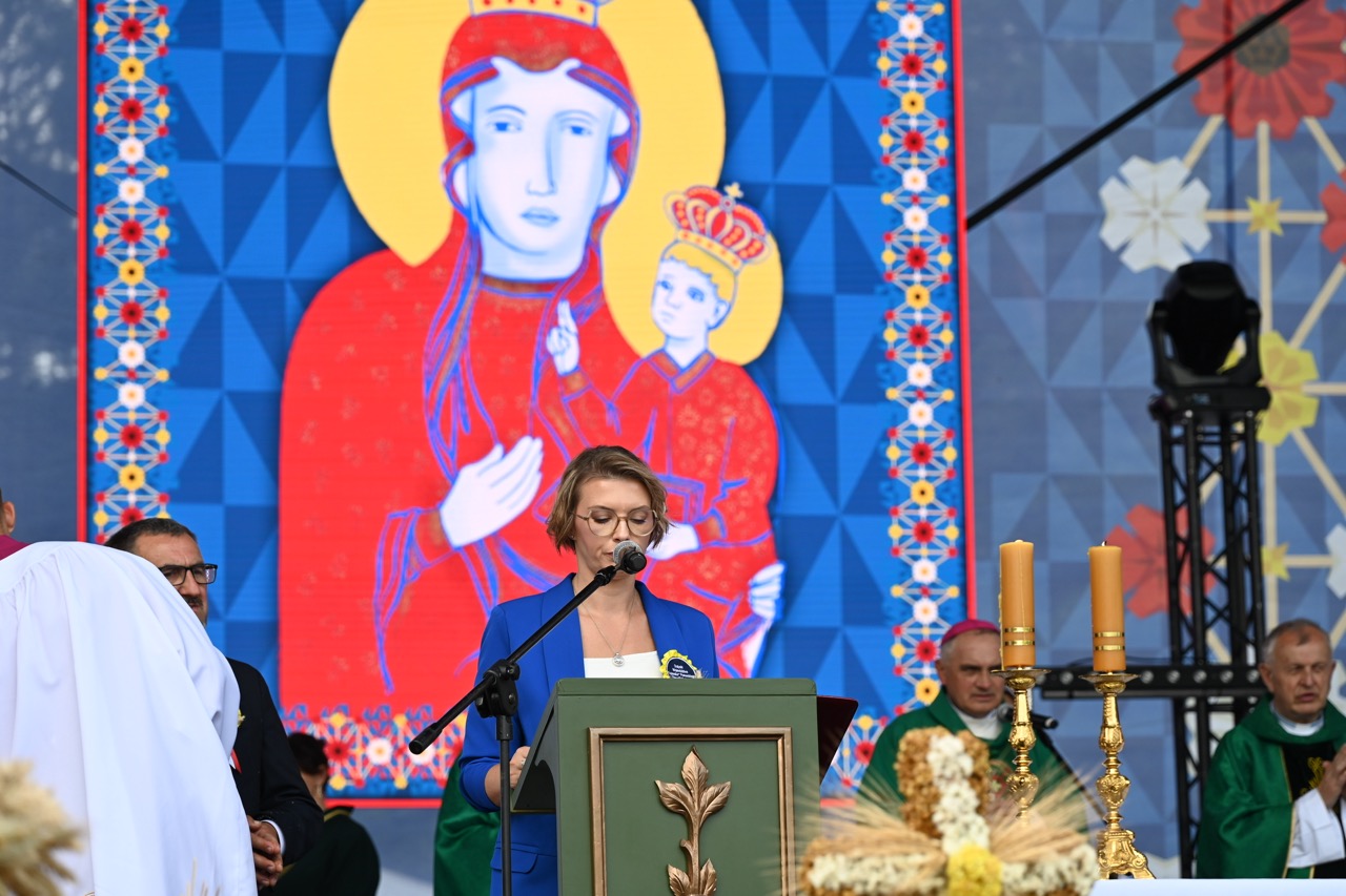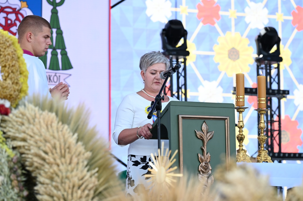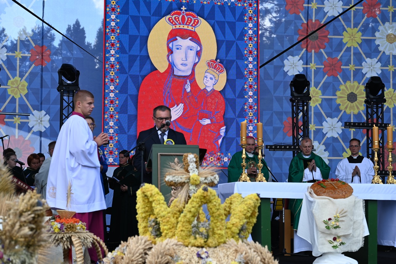 „To niezwykle ważne, by dożynki miały podwójny wymiar: duchowy, kiedy dziękujemy Bogu, i ten ludzki” – mówił marszałek Piotr Całbecki. – Kiedy dziękujemy tym, dzięki którym codziennie mamy na naszych stołach świeży, pachnący chleb. Musimy pamiętać, jakim wysiłkiem i wyrzeczeniami ten chleb jest opłacony – dodał marszałek województwa, dziękując rolnikom. – Niech nasze rolnictwo się rozwija. Niech zasiewy, które już się rozpoczęły, przyniosą w przyszłym roku spodziewane wysokie plony, dobrobyt, radość i szczęście na naszej kujawsko-pomorskiej wsi. Szczęść Boże! – dodał Piotr Całbecki.