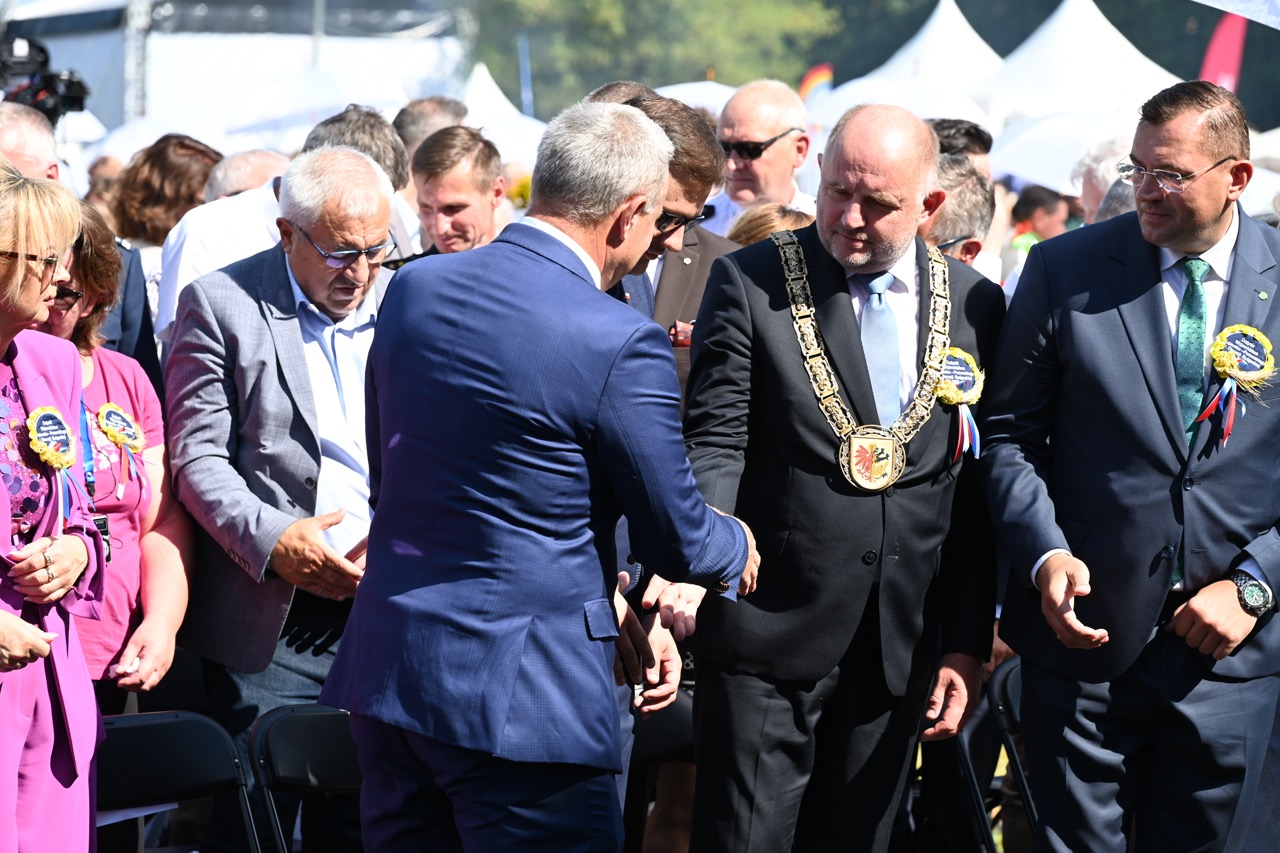 W dożynkach uczestniczyli marszałek Piotr Całbecki, przewodnicząca sejmiku województwa Elżbieta Piniewska, członkowie zarządu województwa, radni, parlamentarzyści, przedstawiciele administracji rządowej, samorządowcy i reprezentacje wiejskich społeczności. Nie zawiedli również mieszkańcy. – Dzisiejsze święto jest okazją, by podkreślić, jak ciężka i wymagająca jest praca na roli. My wiemy, że w rolnictwie nie ma czegoś takiego, jak łatwy rok – ponieważ bezustannie mierzymy się z problemami i wyzwaniami. Właśnie dlatego rolnicy, rolniczki i ich rodziny to silni, twardzi ludzie, którzy wiedzą, jak ważną dla całego społeczeństwa pracę wykonują – mówił, zabierając głos w imieniu kujawsko-pomorskich rolników, starosta dożynek – Krzysztof Tarlach.
