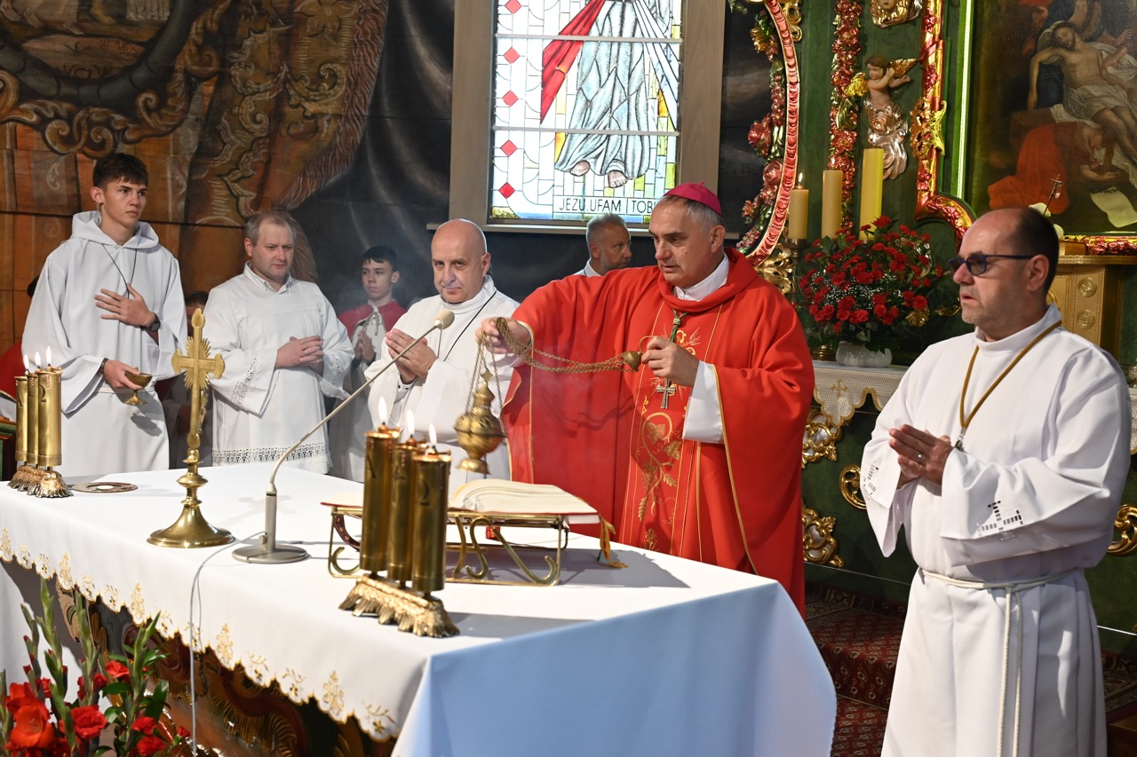 Z okazji rocznicy, a zarazem uroczystości odpustowej, biskup poświęcił gruntownie odrestaurowany przez ostatnie lata kościół, a także ustawioną na zewnątrz po przeciwnej stronie nową figurę św. Michała Archanioła. Została ona ufundowaną przez małżeństwo – Zofię i Adolfa Witt. – To wielki cud, że ta świątynia stoi – mówił proboszcz, ks. kanonik Jarosław Kubiak. – Przetrwała tyle zawieruch czasowych – jak powstania, dwie wojny światowe. Tutaj wciąż mieszka Jezus, który nie opuścił tego miejsca. Chciałbym również podziękować Bogu za dar ludzi, którzy poprzez te lata, tak, jak potrafili, ratowali tę świątynię – dodał proboszcz.