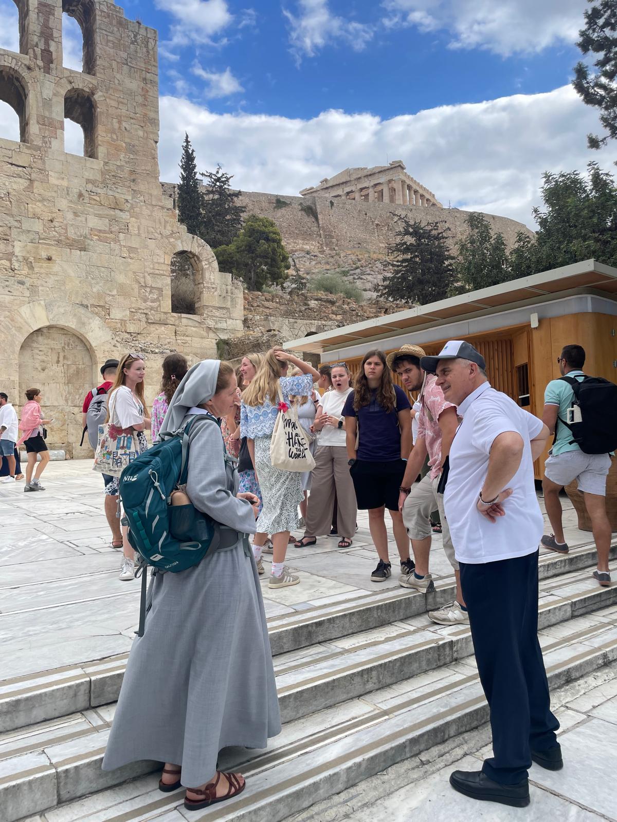 W programie zaplanowano m.in. zwiedzanie Aten, Areopagu, gdzie przemawiał św. Paweł, Akropol, katedry prawosławnej, Koryntu i Akrokoryntu. Oazowiczom towarzyszyła przewodniczka, tłumaczka i organizatorka – s. Anna Błaszak ze Zgromadzenia Sióstr Misjonarek Chrystusa Króla dla Polonii Zagranicznej, która od 3 lat pracuje w Polskiej Misji Katolickiej w Atenach.