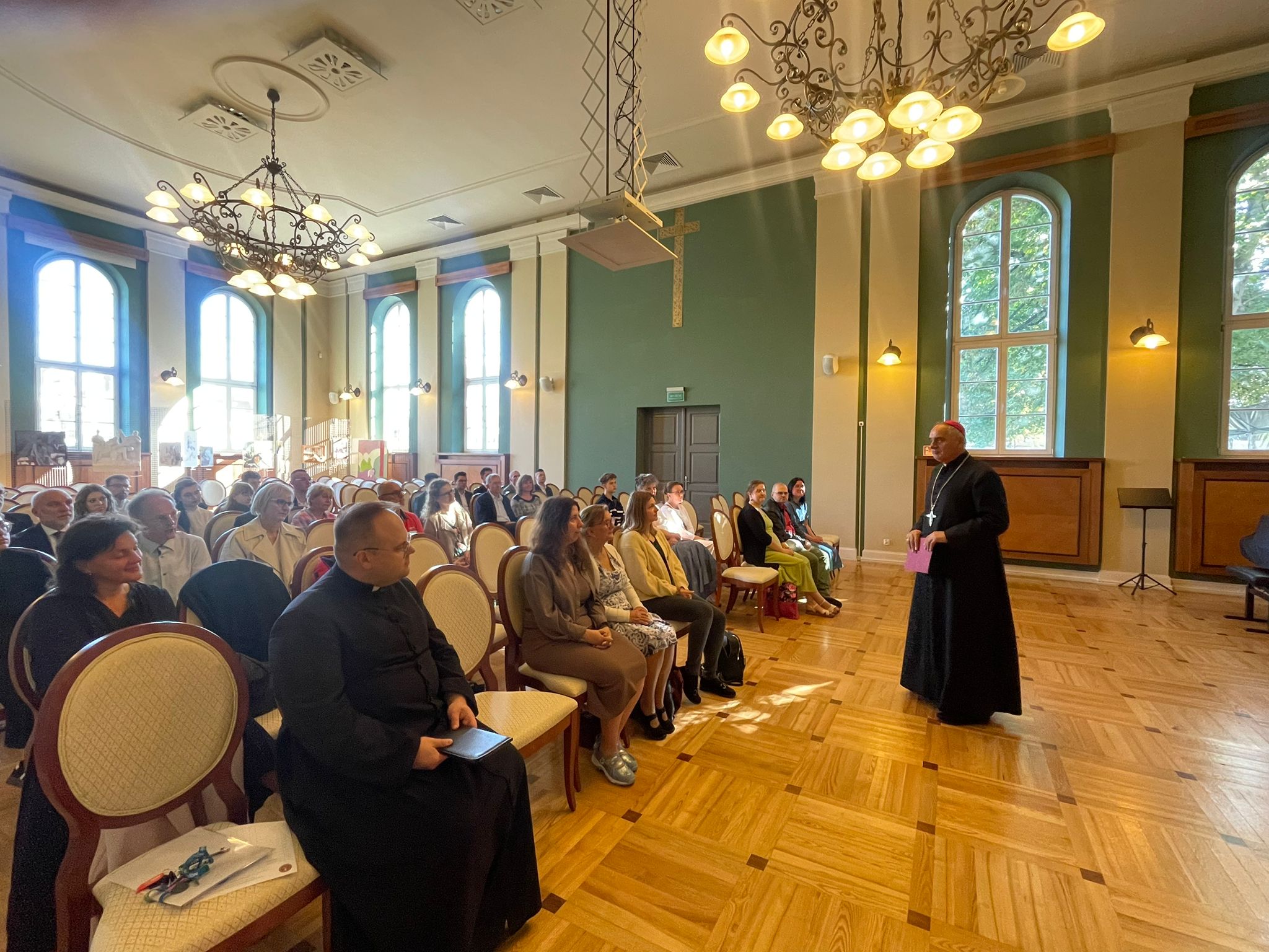 Po Eucharystii uczestnicy przenieśli się do Domu Polskiego, gdzie odbyła się część oficjalna. Spotkanie rozpoczął ks. Łukasz Kucharski, który powitał gości, wśród nich biskupa Krzysztofa Włodarczyka, wykładowców oraz słuchaczy. W swoim słowie odwołał się do przemówienia, jakie wygłosił Benedykt XVI – 24 czerwca 2006 roku – do muzyków, wskazując, że muzyka sakralna może być prawdziwym narzędziem ewangelizacji, ponieważ otwiera serca na tajemnicę Boga. – W tym duchu chcemy, by nasza formacja nie ograniczała się do techniki i teorii, ale obejmowała całego człowieka – jego wrażliwość, duchowość i zdolność do służby. Jesteśmy pielgrzymami nadziei, bo poprzez muzykę niesiemy światło tam, gdzie panuje ciemność. Każdy dźwięk może być modlitwą, każdy akord – świadectwem, każda harmonia – znakiem obecności Boga – podsumował ks. Łukasz Kucharski.