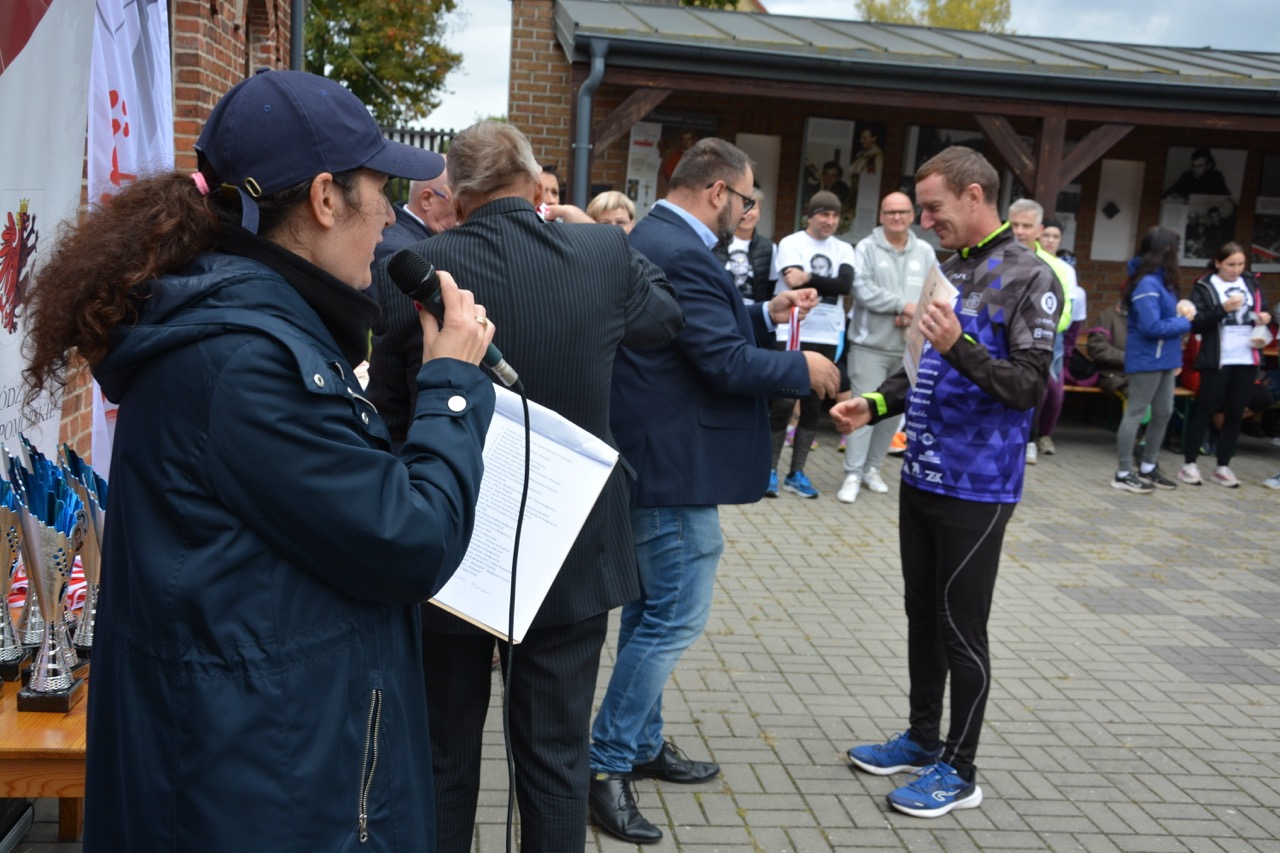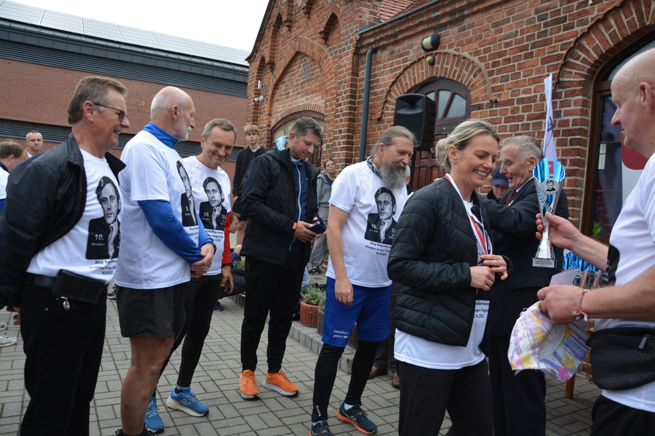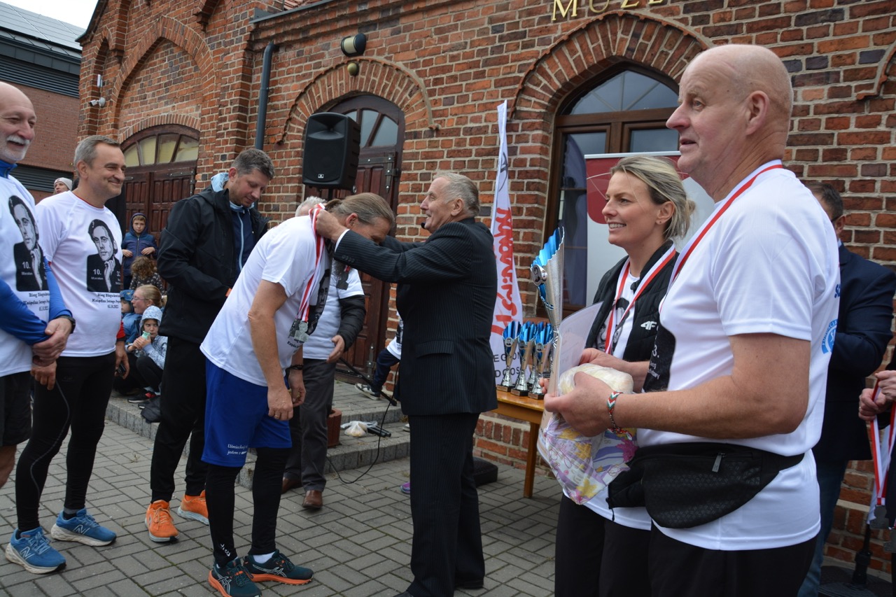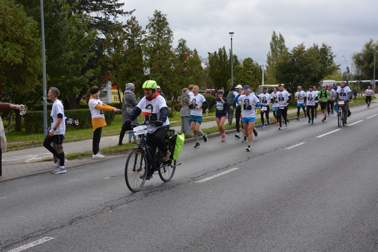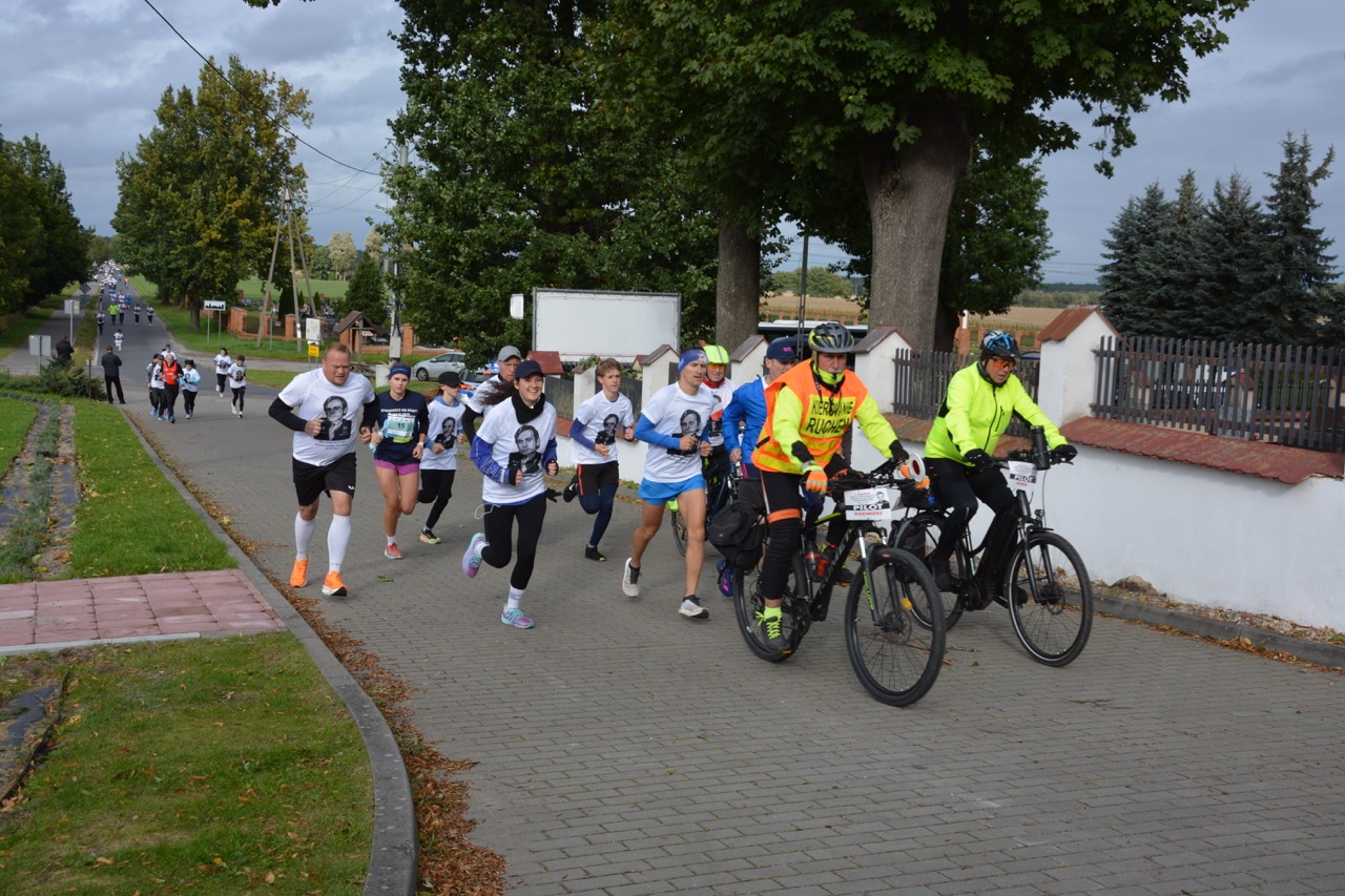 Drużyny sztafetowe miały do pokonania cztery zmiany. Biegły wspólnie z maratończykami. Ostatni odcinek ok. 2,5 kilometra – od krzyża w Górsku do Centrum Edukacji Młodzieży – pokonywali wszyscy razem. – Jest to wydarzenie, które przypomina o niezbywalnych wartościach jakimi są: wolność, godność i prawda. To także przykład integracji środowisk biegowych, młodzieży, dorosłych i osób starszych wokół wspólnego celu – mówią organizatorzy – Regina i Marek Piątkowscy.