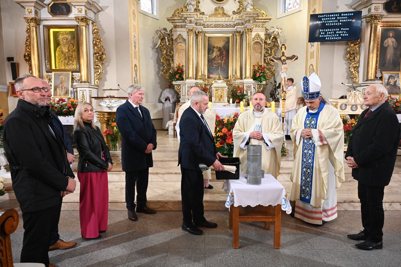 Po błogosławieństwie bp wręczył wybranym osobom Medale „Zasłużonemu Diecezji Bydgoskiej”, a także podziękowania przygotowane przez proboszcza. Następnie odczytano dekret mianujący ks. dr. Michała Adamczyka – z dniem 8 września – kanonikiem gremialnym Kapituły Kolegiackiej w Kcyni, za sumienną pracę duszpasterską w diecezji, ogromne zaangażowanie w życie wspólnoty parafialnej oraz wierną służbę Kościołowi. Potem zamknięto kapsułę czasu, która dla potomnych ma być materialnym śladem rozległych prac remontowych, jakie przeprowadzono w ostatnich latach. Zostanie ona umieszczona we wnętrzu wieży.