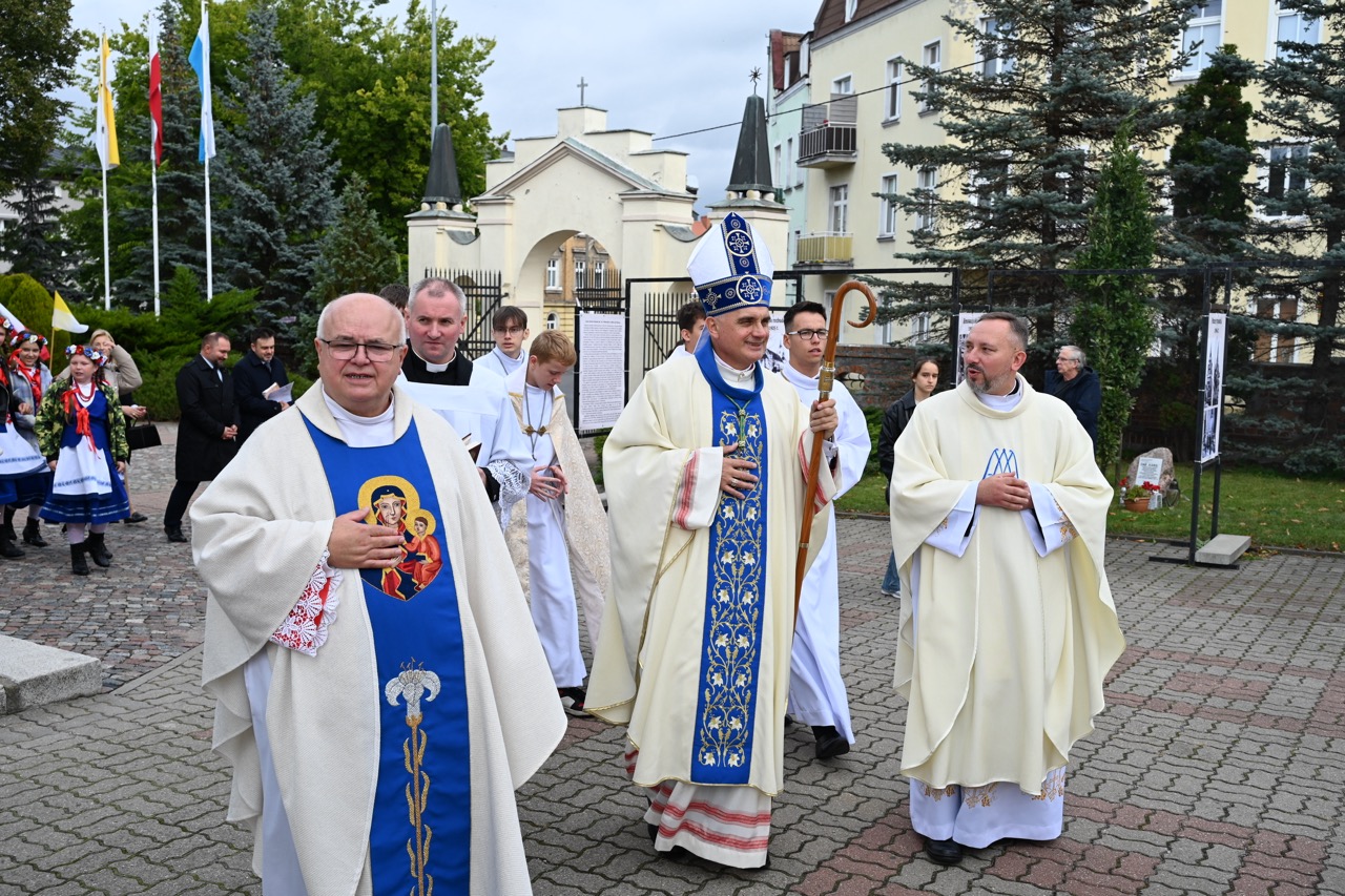 W uroczystość patronalną Matki Bożej Różańcowej – w kościele św. Wawrzyńca – modlili się kapłani, zaproszeni goście, wśród nich przedstawiciele władz, a także mieszkańcy Nakła nad Notecią. – Maryja dzisiaj przychodzi do nas, chce się podzielić radosną nowiną: Bóg zamieszkał od stu lat w tej świątyni – mówił bp Krzysztof Włodarczyk, który przewodniczył liturgii Mszy św.