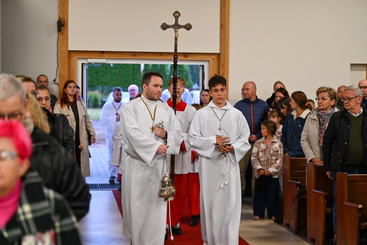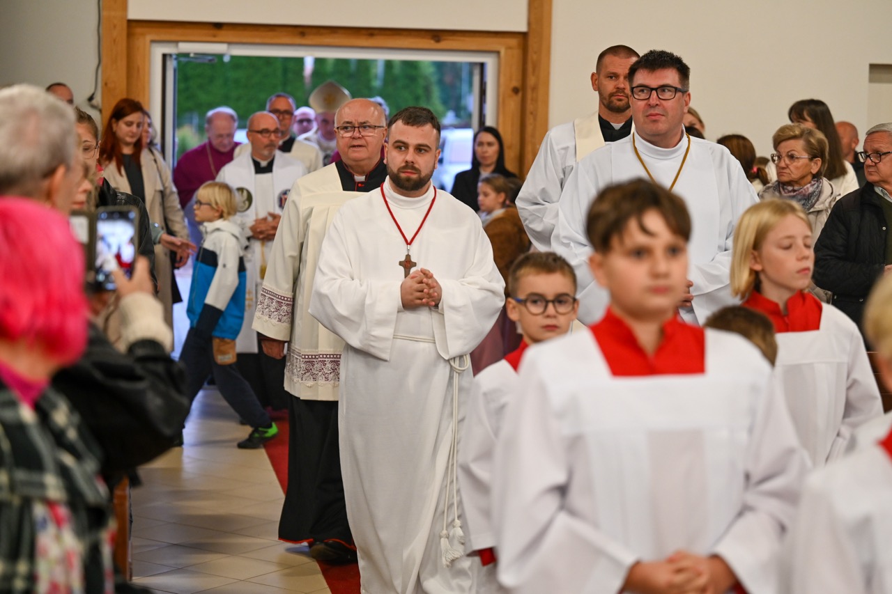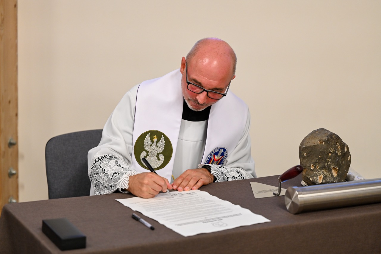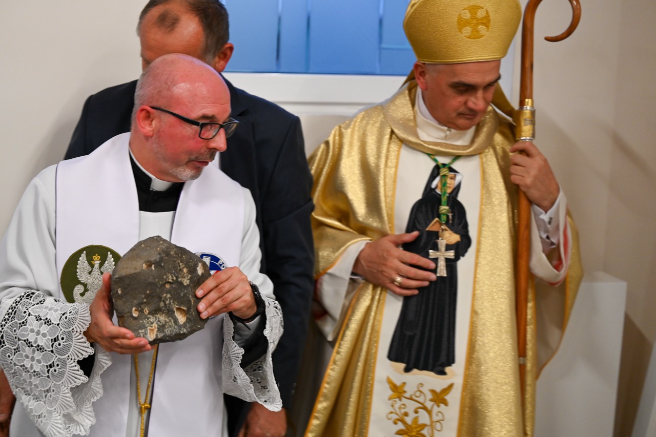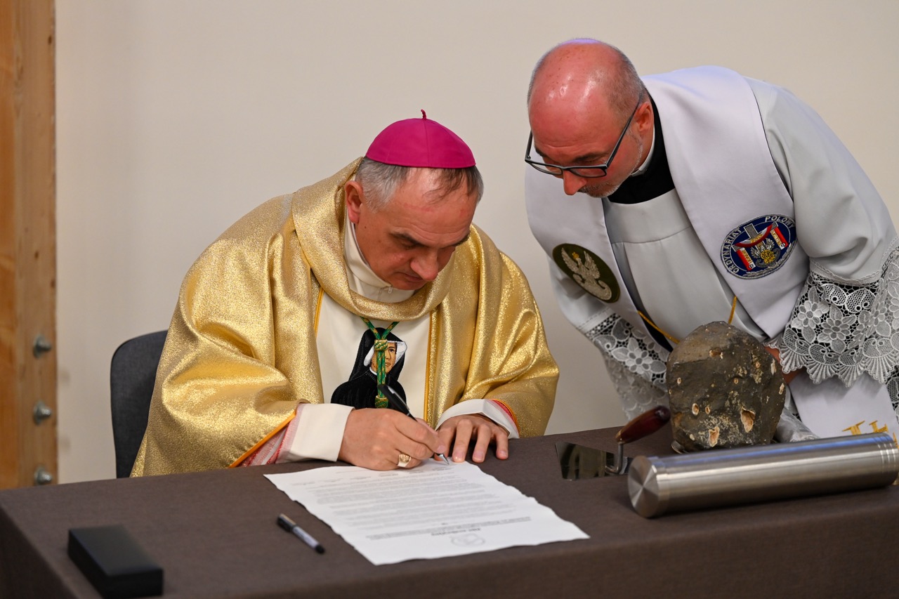 Akt erekcyjny odczytała Magdalena Marcinkowska. Następnie zostały złożone podpisy, a dokument z innymi rzeczami zamknięty w tubie oraz schowany w jednej ze ścian powstającego kościoła. Na nim spoczął kamień węgielny. – Dziękuję za to, że możemy przeżywać razem tak wzniosłą uroczystość – mówił proboszcz, ks. Marek Januchowski, podkreślając, że kamień staje się podwaliną tego miejsca, tej rzeczywistości, którą wybrała św. Siostra Faustyna. – Chce, by był to przepiękny dom. Stąd jestem przekonany i wierzę w to głęboko, że nasza patronka, modli się, by ta przestrzeń była pięknem dla ludzi, wszystkich, którzy tu przychodzą i szukają drogi do wiary, miłości i Miłosierdzia – powiedział.