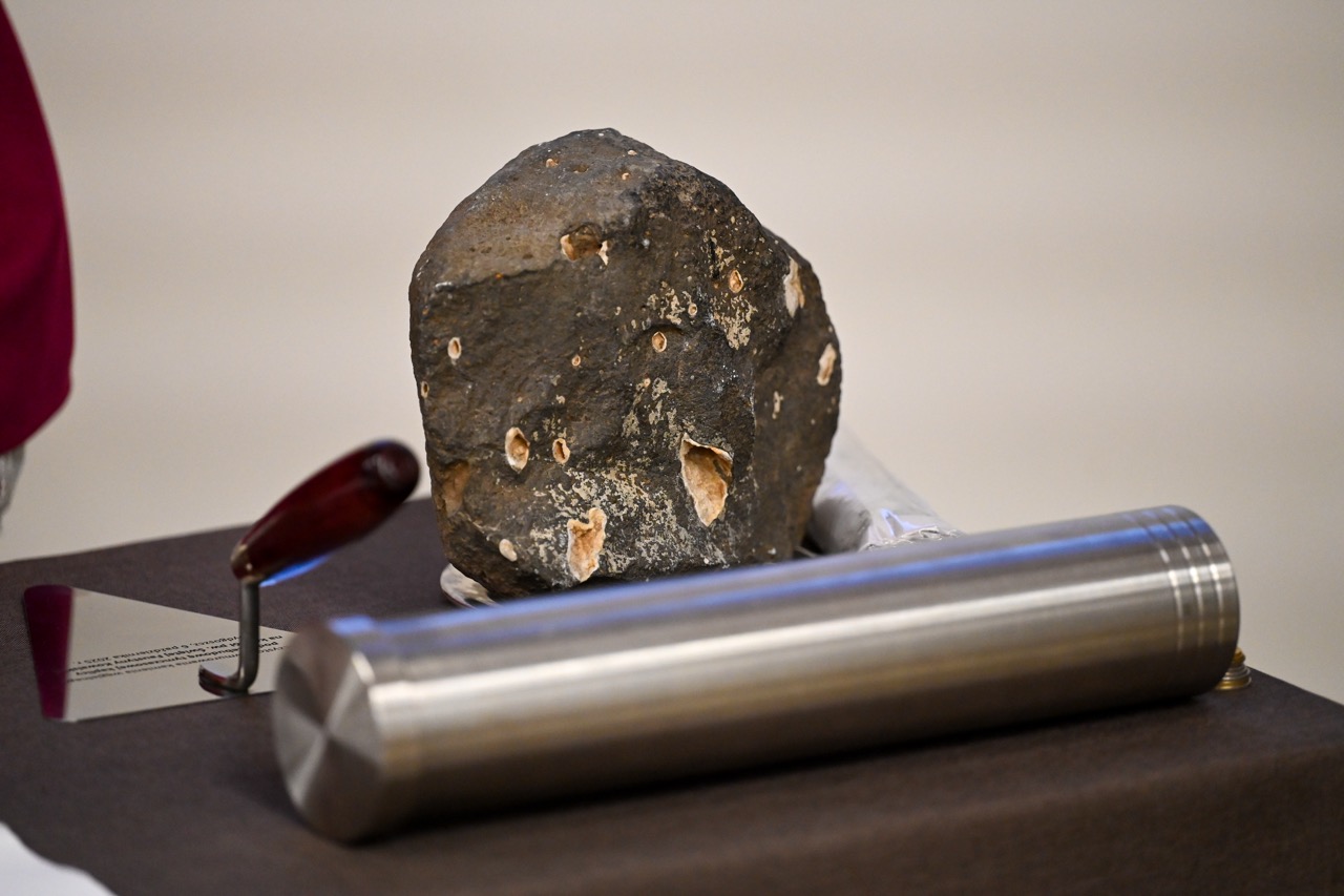 To jedna z największych uroczystości w dotychczasowej historii tej wspólnoty. Kamień pochodzi z Góry Błogosławieństw z Ziemi Świętej. Został pobłogosławiony przez św. Jana Pawła II 25 listopada 2001 roku w Rzymie i przekazany dla parafii na osiedlu Eskulapa, która już wtedy planowana była przez ks. prałata Zygmunta Trybowskiego.