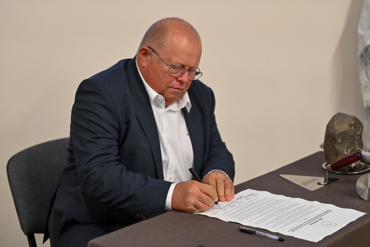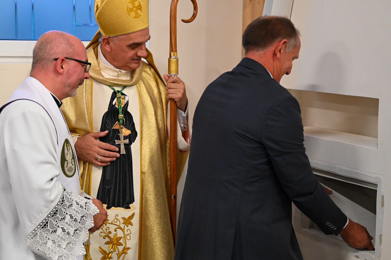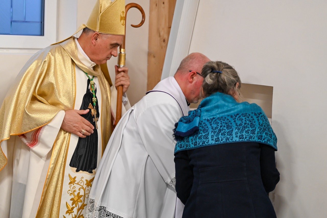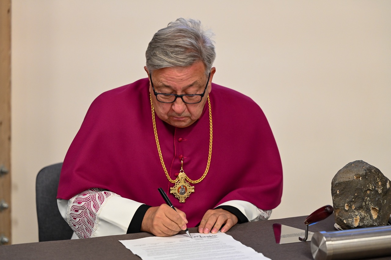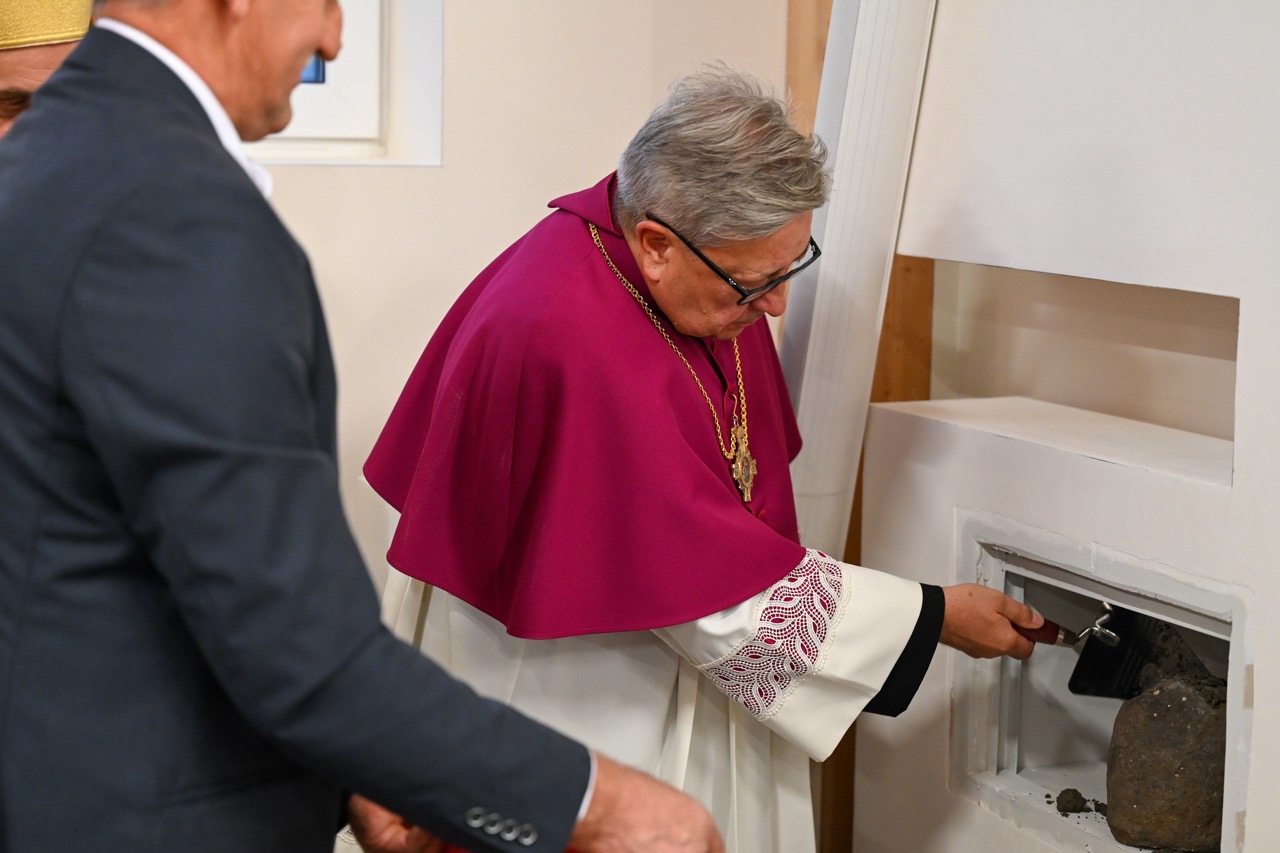 Przed wmurowaniem kamienia węgielnego został odczytany i podpisany akt erekcyjny przez księdza biskupa i zaproszone osoby. – Oto dziś gromadzimy się w naszym wspólnym domu, Wieczerniku, by świętować spotkanie z naszą patronką – św. Faustyną – jej 120 urodziny i imieniny oraz przeżywać radość budowania wspólnoty parafialnej – mówiła podczas wprowadzenia – Agnieszka Wedeł.