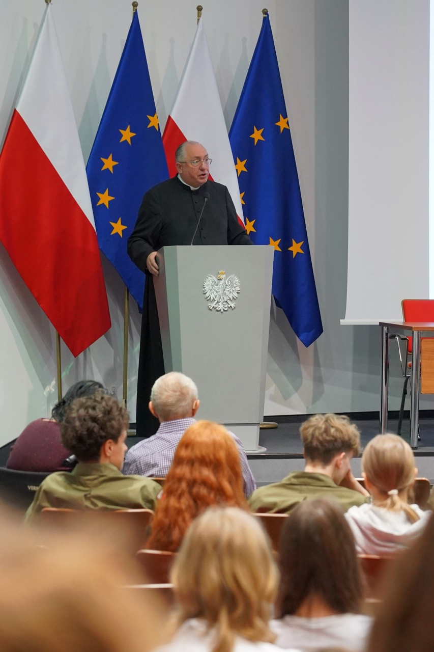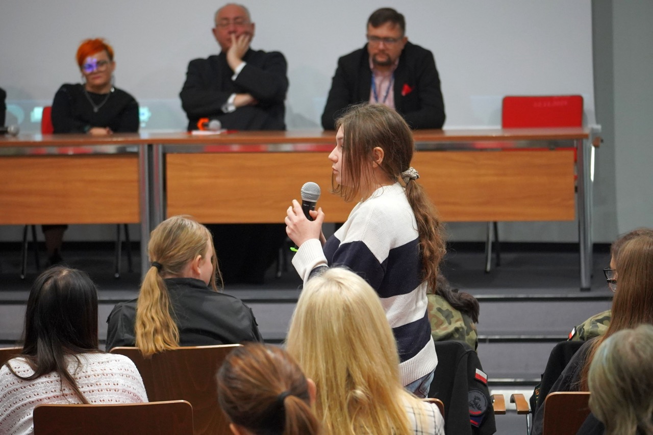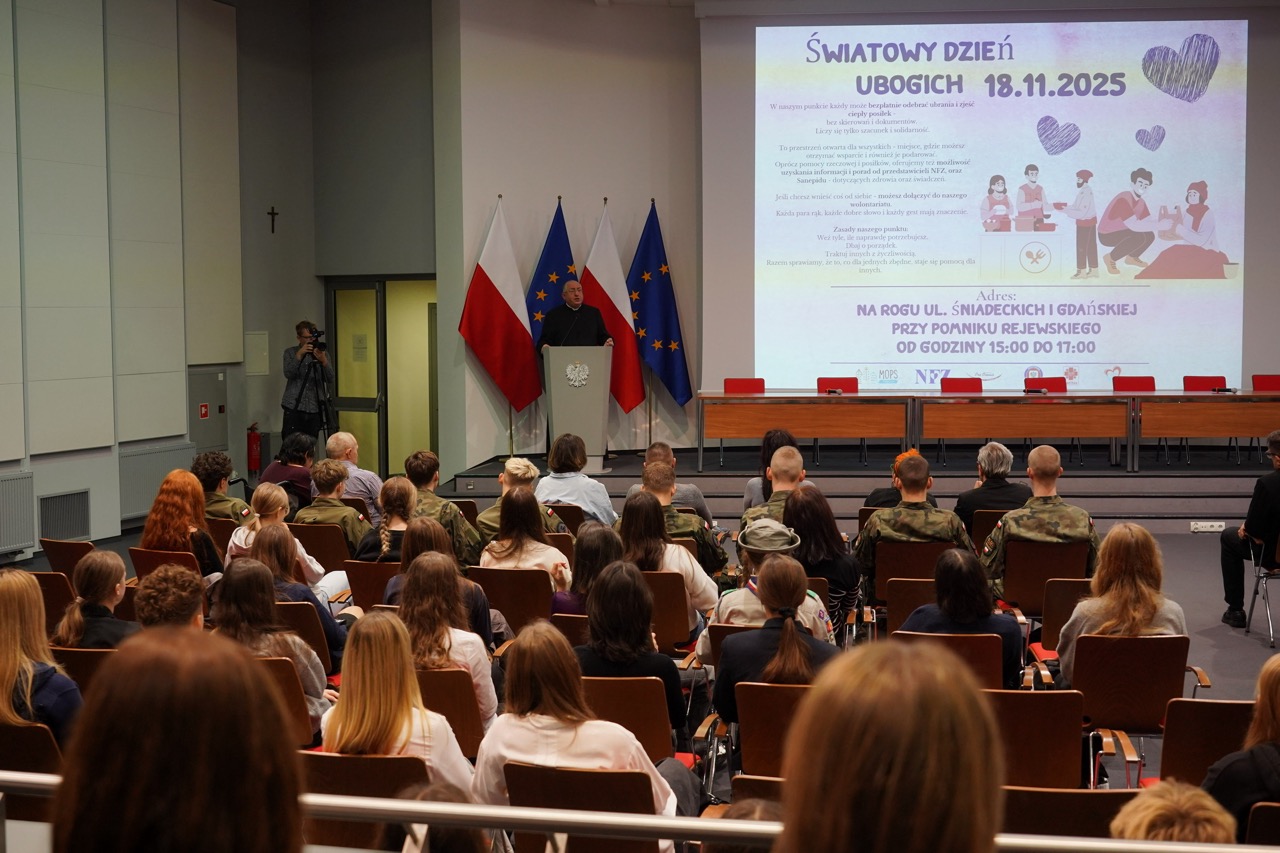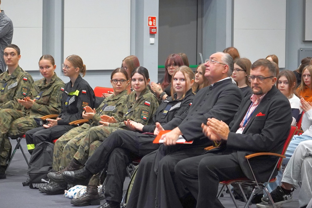 Sednem był panel dyskusyjny, gdzie każdy z uczestników mógł przedstawić swój punkt widzenia. – Czy z każdym rokiem liczba osób będących w potrzebie rośnie czy się zmniejsza – pytała uczennica. – Niestety tych potrzeb z roku na rok jest więcej – powiedział ks. prałat Wojciech Przybyła, prezentując wachlarz pomocy, jaką proponuje Caritas Diecezji Bydgoskiej. Dyrektor wskazał także, że bycie ubogim dotyka również przestrzeni duchowej, moralnej i wartości. – Ostatnia adhortacja papieża Leona XIV „Dilexit te” przypomina, że każdy człowiek posiada swoją godność, powinien być ważny dla bliźniego i całego świata. Wiemy również, że drugie imię papieża Franciszka to „ojciec ubogich”, bo w swoich wypowiedziach, homiliach, podczas spotkań wyraźnie uwrażliwiał nas na przestrzeń wykluczenia społecznego, na bycie ubogim w XXI wieku – dodał ks. prałat Wojciech Przybyła.