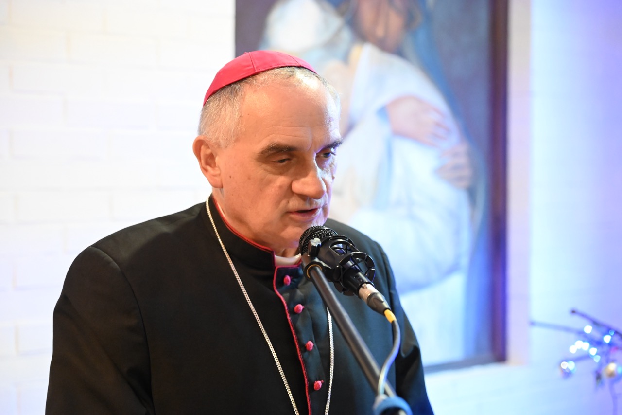 Wigilię rozpoczęto od odczytania fragmentu Ewangelii o Bożym Narodzeniu. – Usłyszeliśmy, co stało się w historii. Syn Boży stał się człowiekiem, zamieszkał między nami. Stał się podobny do każdego z nas, oprócz grzechu. I ten Syn przychodzi jako dziecię, by być blisko człowieka. On przychodzi nie tylko w święta, ale w codzienności. Moje życzenie – o to będę się modlił – byście mieli odwagę Jezusa zapraszać na ścieżki swojego życia. Byście odczuwali, że jest o was zatroskany – nie tylko dzisiaj – dodał bp Krzysztof Włodarczyk.