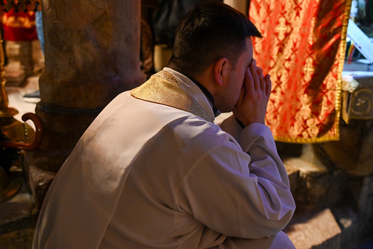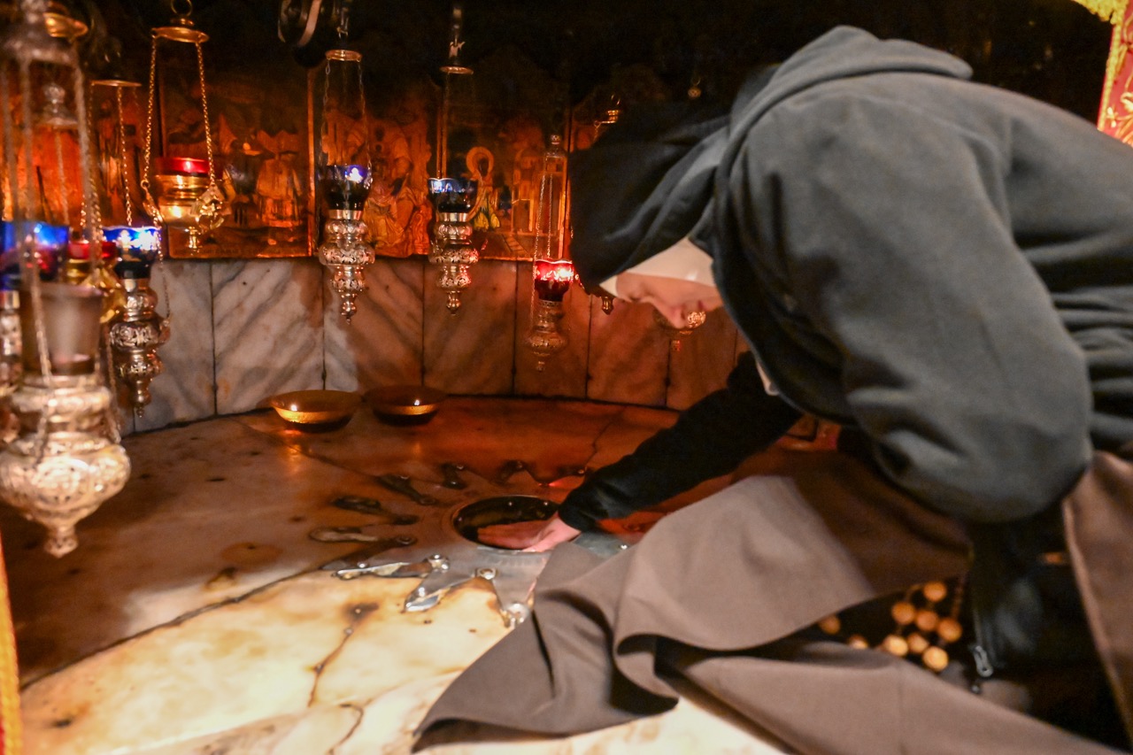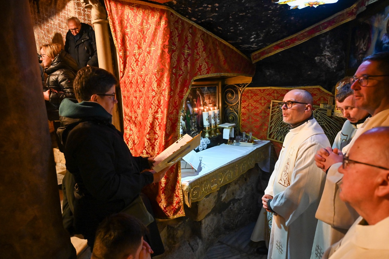 W Bazylice Narodzenia Pańskiego modliła się grupa pielgrzymów z diecezji bydgoskiej. – Stoimy w miejscu, gdzie „Słowo stało się ciałem i zamieszkało między nami”. W tej grocie Bóg wszedł w historię człowieka nie z mocą pałaców, lecz w ciszy, ubóstwie i pokorze. Tak spełniła się zapowiedź proroka Izajasza: „Naród kroczący w ciemnościach ujrzał światłość wielką”. Tą światłością jest Dziecko z Betlejem – Bóg bliski, Emmanuel – mówił ks. Krzysztof Kozłowski, który wygłosił homilię.