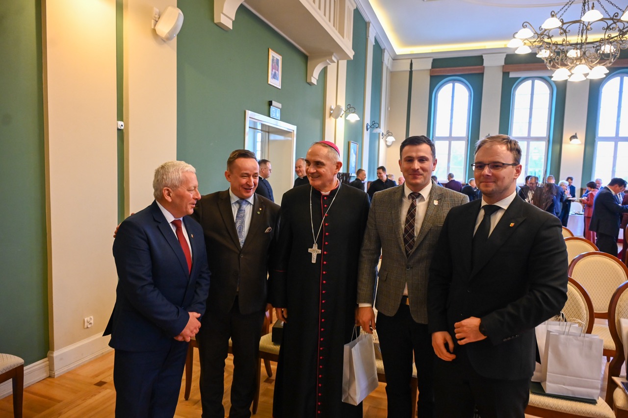 Według wicewojewody wielkopolskiego czas obchodów Bożego Narodzenia i świętowania Nowego Roku nie powinien ograniczać się tylko do wspominania tradycji. – Ten rodzący się maleńki Pan Jezus, owinięty w pieluszki, położony w żłobie, to cząstka nagiej prawdy, która dzisiaj tak często bywa zakłamywana, przeinaczana. Chociaż prawda zwycięży i zawsze się przebije, to zauważmy, jak ten otaczający świat potrafi dzisiaj ją niszczyć, wykorzystywać i nie w tym świetle stawiać, w jakim być powinna. Więc cieszymy się, że przychodząc tutaj możemy skorzystać z tego duchowego wsparcia. Z tego, że tutaj znajdziemy ten element odwzorowania dla tej małej, nagiej prawdy, rodzącej się w sercu każdego z nas – dodał Jarosław Maciejewski. – Pragnę podziękować księdzu biskupowi za niezwykle ważne, integrujące spotkanie. Mocno wybrzmiało, że żyjemy w trudnym czasie. Jako samorządowcy w szczególny sposób odczuwamy niepokój naszych mieszkańców o pokój, który jest zagrożony. Tak, jak zagrożony jest świat pewnych wartości, utrwalony przez dziesięciolecia – dodał członek zarządu województwa kujawsko-pomorskiego – Marek Wojtkowski.