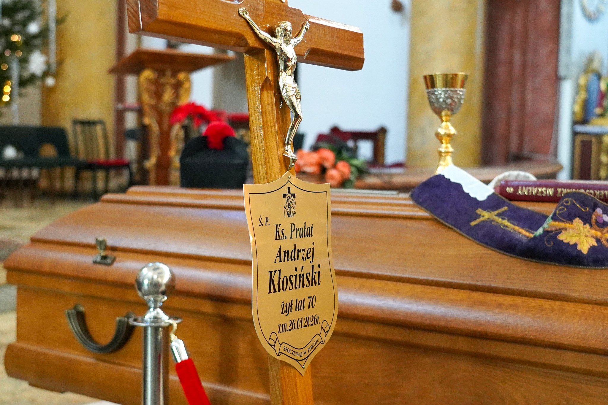 „Zapraszam do modlitwy – tyle możemy dzisiaj, jako pielgrzymi w drodze, zrobić – z miłości do tego, który odchodzi do wieczności” – mówił bp Krzysztof Włodarczyk, który przewodniczył Mszy św. pogrzebowej. – Ufamy, że zajmie to miejsce przygotowane w niebie. Umocnieni światłem nadziei, które wypływa ze zmartwychwstania Jezusa, będziemy pokornie zanosili błagania, by już świętej pamięci ksiądz prałat Andrzej Czesław Kłosiński radował się pełnią szczęścia w królestwie niebieskim – dodał ordynariusz diecezji bydgoskiej.