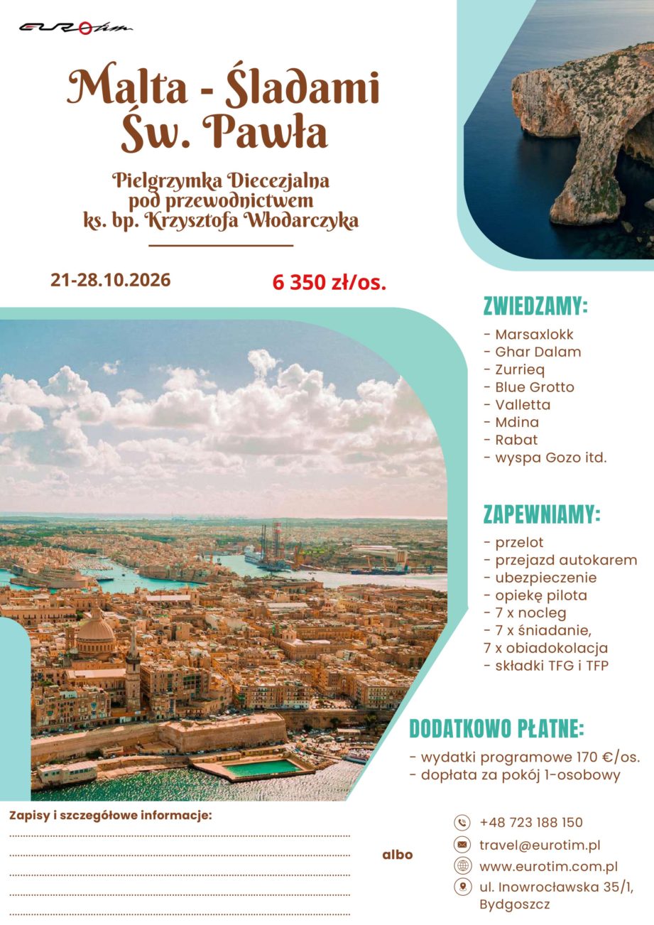 Zapraszamy do udziału w pielgrzymce diecezjalnej śladami św. Pawła na Maltę.