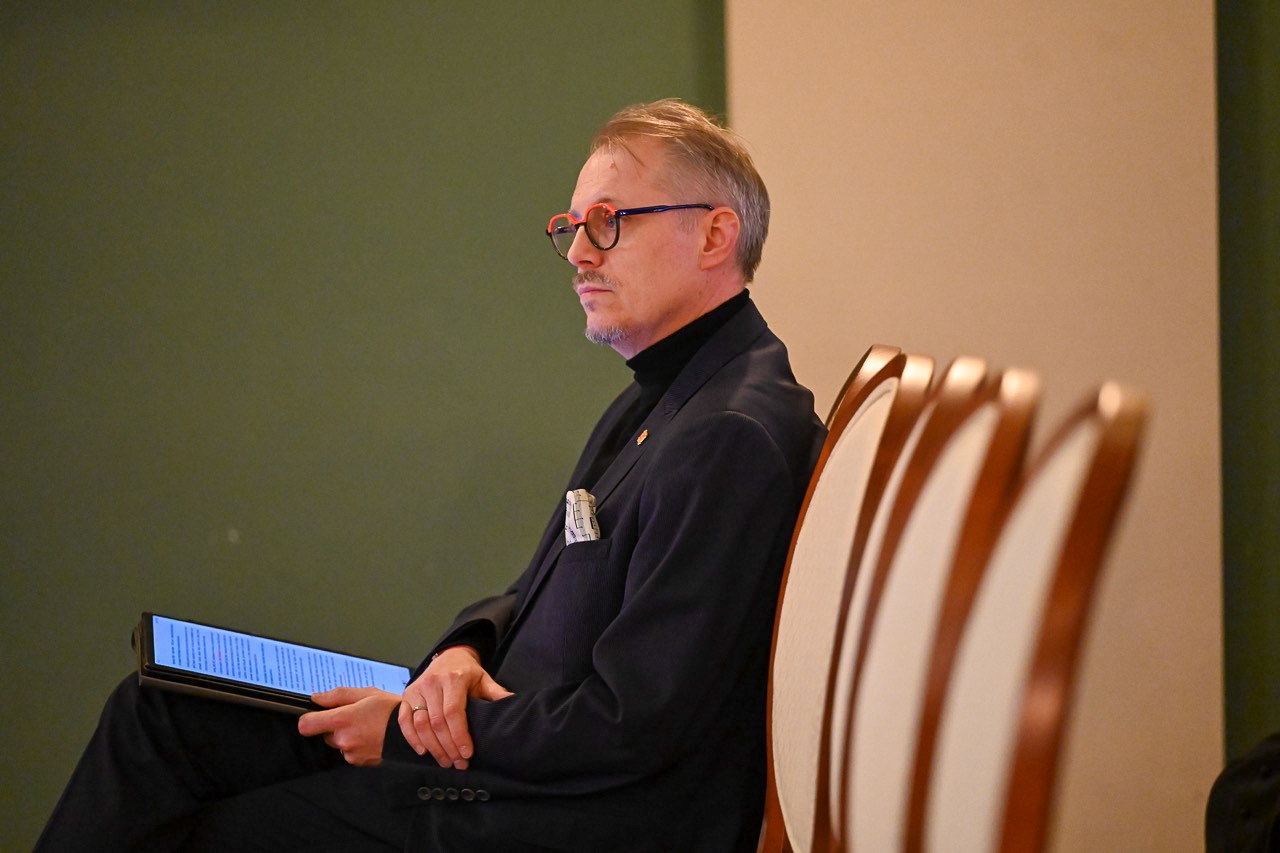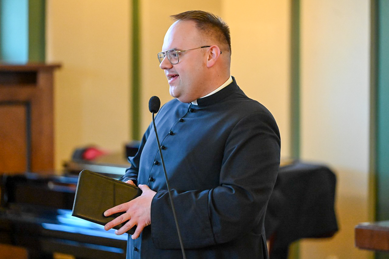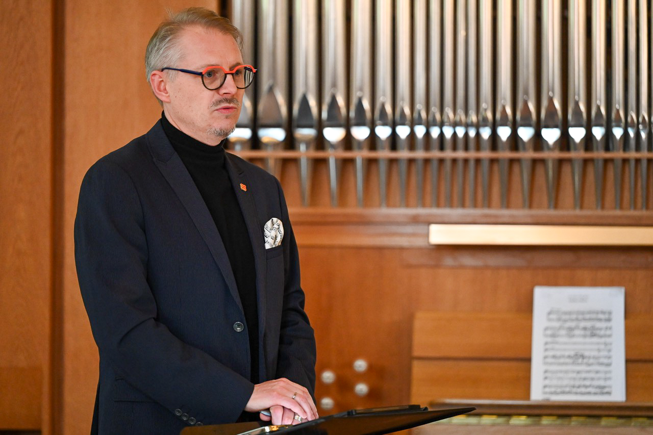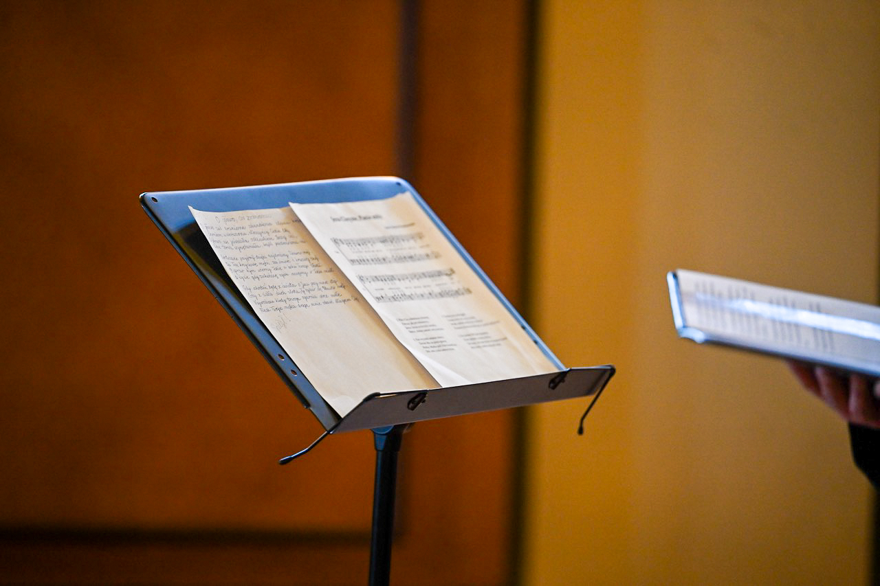 Wieczór rozpoczął się refleksją wygłoszoną przez dyrektora DIMK, ks. Łukasza Kucharskiego, inspirowaną jednym z najbardziej poruszających momentów Pasji według św. Jana Sebastiana Bacha — arią-modlitwą następującą po słowach „Wykonało się”. Wprowadzenie ukazało dramatyczne pytania człowieka stojącego wobec tajemnicy zbawienia i wskazało na milczące „tak” Chrystusa, wyrażone w geście pochylonej głowy. Ta perspektywa stała się kluczem do przeżycia całego Misterium.