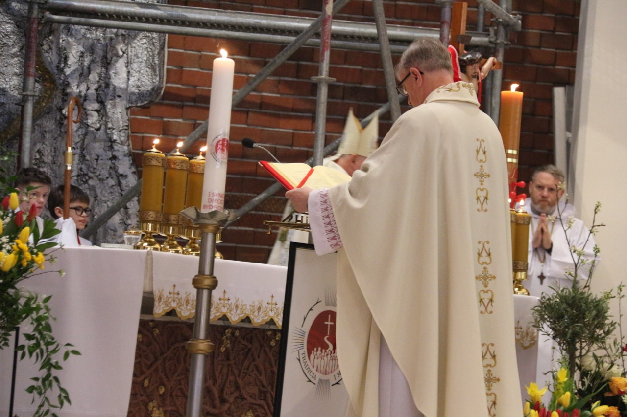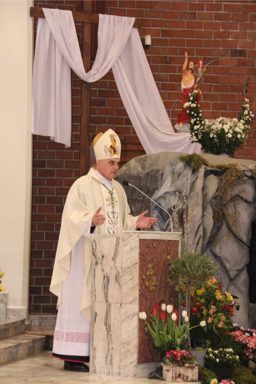 Nawiązując do Ewangelii o spotkaniu Zmartwychwstałego z apostołami, biskup zwrócił uwagę na powracający motyw zamkniętych drzwi. – Pan Jezus potrafi przechodzić przez mury, potrafi podważyć kamień z grobu, ale nie chce forsować na siłę naszego serca, nie wedrze się wbrew naszej woli – mówił. Jak podkreślił, Chrystus „staje i czeka”, a człowiek – jak apostoł Tomasz – musi sam podjąć decyzję otwarcia się na wiarę i miłosierdzie. W tym kontekście wskazał na sens Niedzieli Miłosierdzia Bożego: „jednego z najpiękniejszych świąt bardzo bliskich ludzkiemu sercu”, bo – jak zaznaczył – „wszyscy potrzebujemy Bożego miłosierdzia”. Przywołując nauczanie papieża Franciszka, przypomniał, że „Miłosierdzie to Imię Boga” i że Bóg „nigdy nie męczy się przebaczaniem”, a całe to orędzie – jak podkreślił – pozostaje szczególnie aktualne „w dzisiejszym świecie”, w którym tak bardzo potrzeba zarówno Bożego, jak i ludzkiego miłosierdzia.