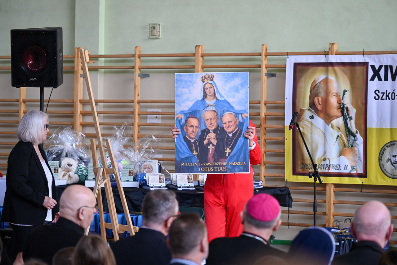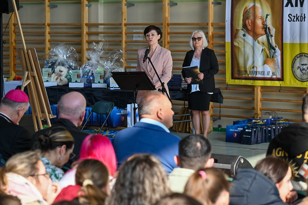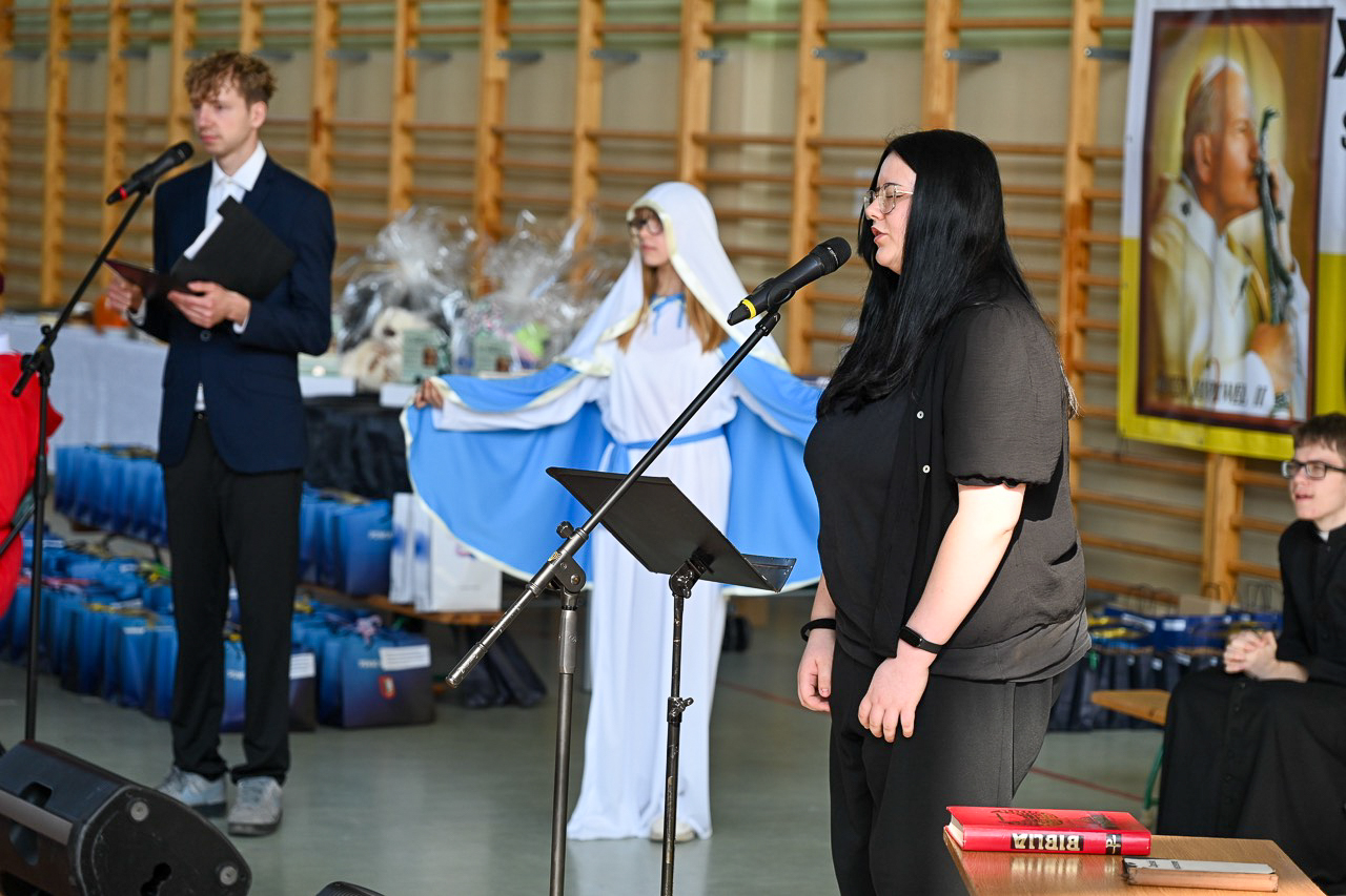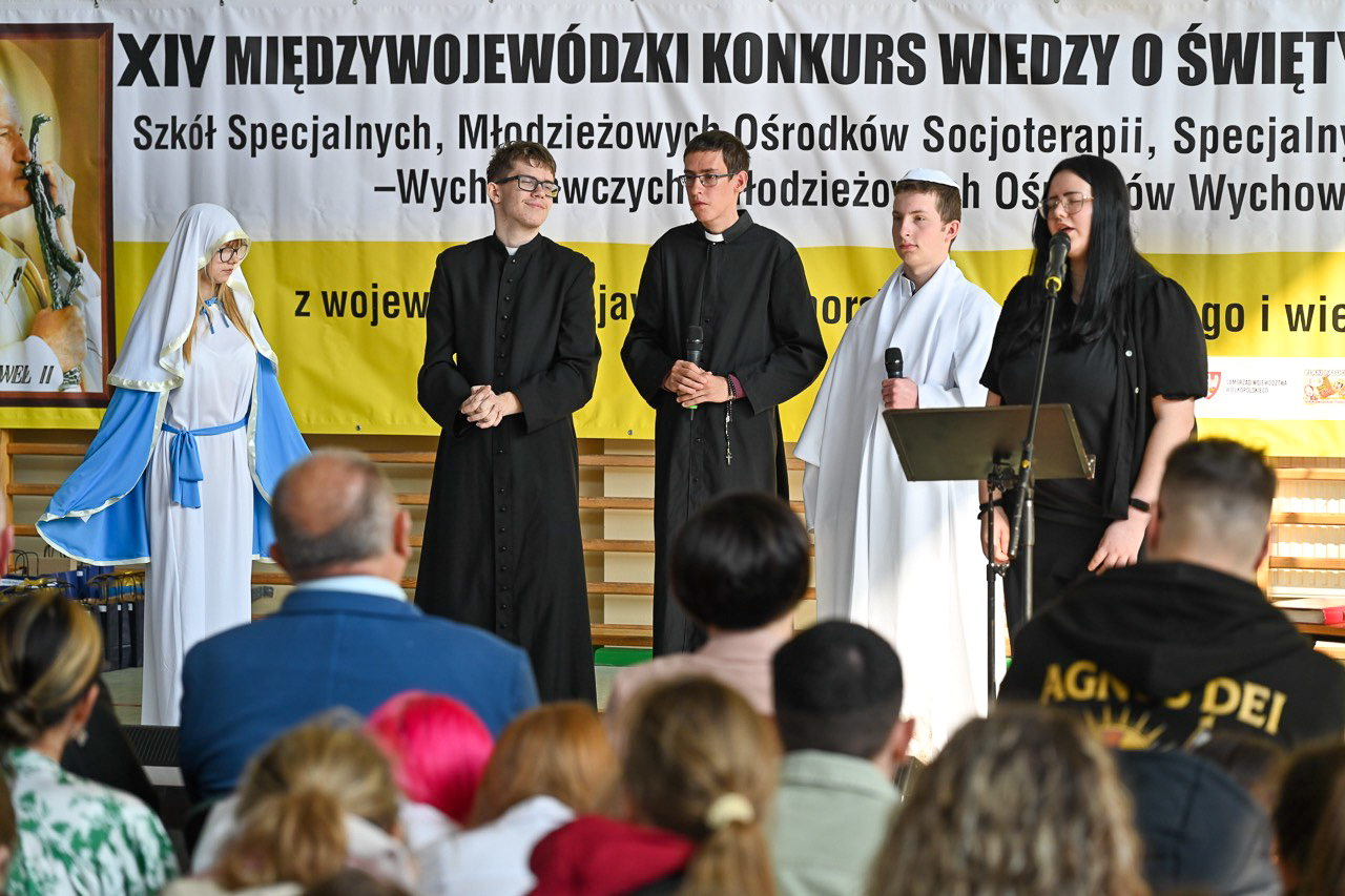 Uczestnicy musieli rozwiązać test. – To krótkie, ale niezwykłe zawołanie święty Jan Paweł II uczynił mottem swojego życia i pontyfikatu. Wyraża ono całkowite zawierzenie Bogu, a przez Maryję oddanie służbie drugiemu człowiekowi – mówiła dyrektor Zespołu Szkół Specjalnych im. Janusza Korczaka w Kcyni, odwołując się do słów „Totus Tuus – Cały Twój”. – Patrząc na poprzednie edycje naszego konkursu widzimy, jak krok po kroku odkrywaliśmy różne wymiary jego życia – nauczanie o rodzinie, troskę o młodych, przesłanie nadziei i godności człowieka. Każdy z tych tematów prowadził nas bliżej zrozumienia, kim był św. Jan Paweł II – dodała Agnieszka Maciejewska.