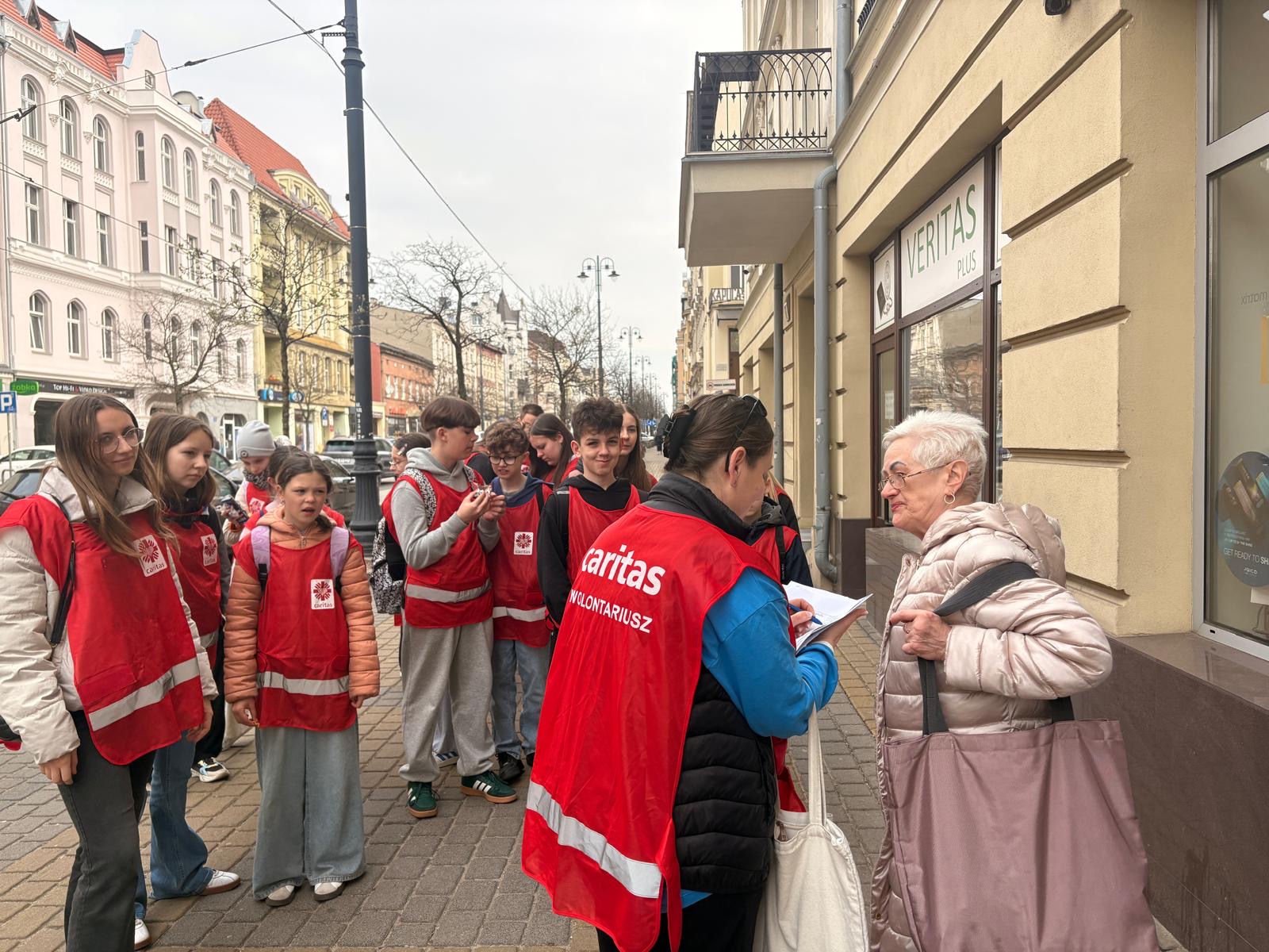 W czwartek,16 kwietnia, w samym sercu trwającego Tygodnia Miłosierdzia, ulice Bydgoszczy wypełniły się młodymi ludźmi w charakterystycznych plastronach Caritas. Około sześćdziesięciu wolontariuszy ze Szkolnych Kół Caritas wzięło udział w Grze Miejskiej „Moc Miłosierdzia – Bydgoski Szlak Caritas”. – Nie chodziło tylko o poznanie naszych placówek. Chcieliśmy pokazać, że miłosierdzie dzieje się tu i teraz – w konkretnych miejscach i relacjach – mówi ks. prałat Wojciech Przybyła, dyrektor diecezjalnej Caritas.