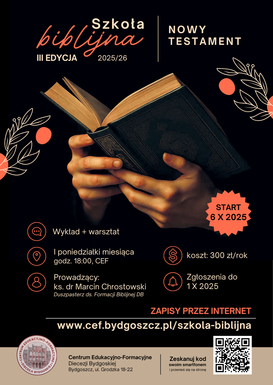 Spotkania poprowadzi ks. dr Marcin Chrostowski – duszpasterz ds. Formacji Biblijnej Diecezji Bydgoskiej