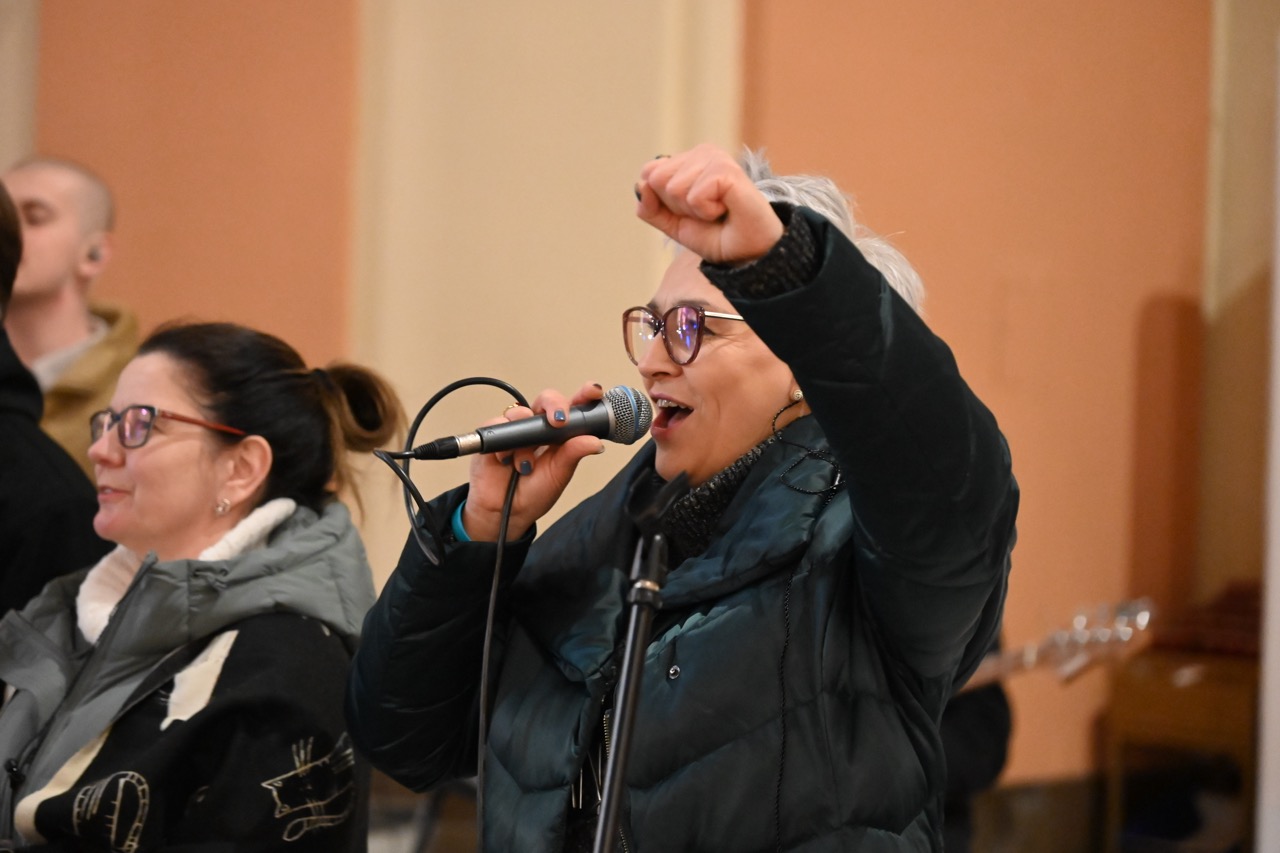„Widzę dom, w nim otwarte drzwi, Ojciec czeka na mnie w nich. Woła mnie, wiem że mogę wejść, On opatrzy rany me, wiele bitew za mną jest. To czas, by ucztować, w sercu mam pokój, gdy wokół wojna, na oczach moich wrogów Pan zastawia stół” – śpiewał zespół ekumeniczny.