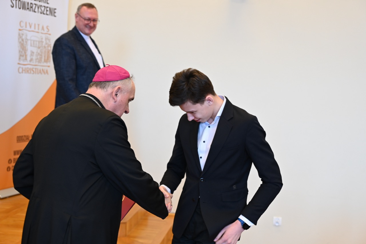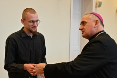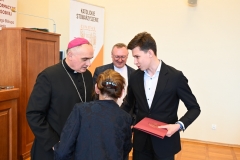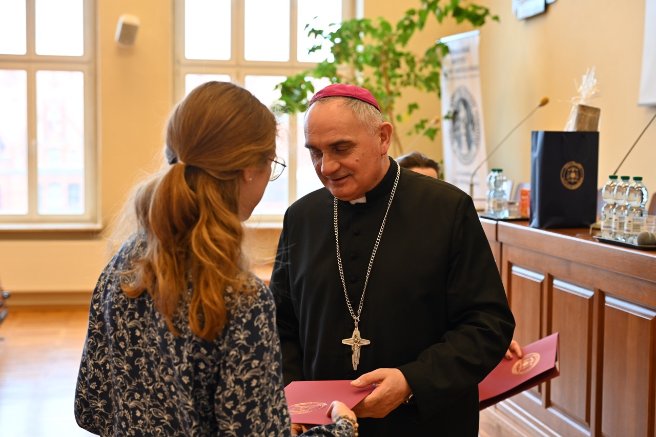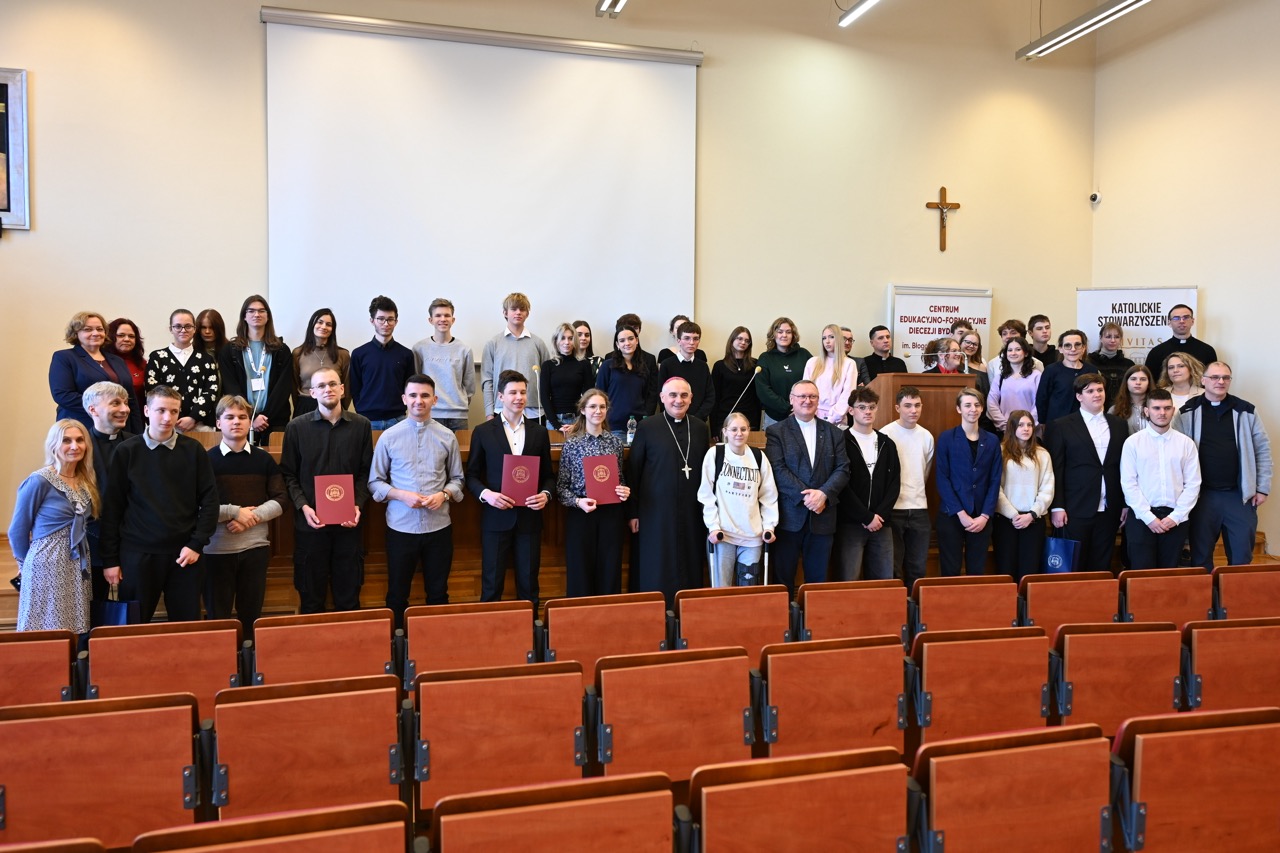W diecezji bydgoskiej do rozwiązania testu pisemnego przystąpiło kilkudziesięciu uczniów. – Dzięki temu, że przeżywamy Rok Święty, możemy zyskać wiele odpustów. To dla nas uprzywilejowany czas – powiedział bp Krzysztof Włodarczyk, dziękując uczestnikom. – To oderwanie się od codzienności, by przeżyć piękne chwile i zmierzyć się z tym, co udało się nauczyć. Ostatecznie ta wiedza przyda się także do osobistego rozwoju – dodał ordynariusz. – Jestem dumny z Patryka. To jeden z nielicznych uczniów, który czyta książki teologiczne, dotyczące osoby Benedykta XVI czy dogmatyki. To wielka radość, kiedy widzi się w młodym pokoleniu zapał związany z wiarą, pogłębianiem wiedzy religijnej, swojej duchowości – podkreślił ks. Łukasz Mostowik CM, katecheta VI LO w Bydgoszczy, opiekun zwycięzcy etapu diecezjalnego, jaki odbywał się w Centrum Edukacyjno-Formacyjnym.