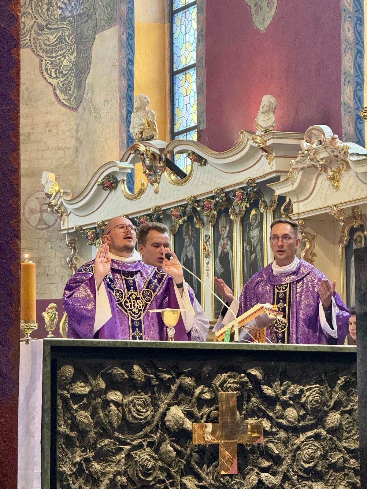 Najważniejszym momentem konferencji była Msza Święta, której w bydgoskiej katedrze przewodniczył zaproszony dominikanin. Śpiew prowadziła schola liturgiczna „Cantemus Domino” działająca przy CFL. Na koniec uczestnicy ponownie zgromadzili się w kaplicy CEF na celebracji Nieszporów, którym przewodniczył ks. Mateusz Nowak, Oficjał Sądu Biskupiego. – Dlaczego wybraliśmy taki temat? Według nas, liturgia jest fundamentem życia chrześcijańskiego. Jest sercem życia Kościoła – jak naucza Sobór Watykański II – źródłem i szczytem Jego działania. W niej dokonuje się spotkanie Boga z człowiekiem, które nie tylko przemienia chwilę, ale kształtuje całe życie. Dla chrześcijanina liturgia to więcej niż uczestnictwo w niedzielnej Eucharystii. To droga, na której człowiek uczy się modlitwy, pokory, wdzięczności, słuchania Słowa, ofiarowania siebie i wspólnotowego przeżywania wiary. To szkoła życia duchowego, w której rytm modlitwy, gestów, milczenia i śpiewu staje się częścią codziennego wzrastania w wierze. Dlatego właśnie zaczęliśmy od tematu, który wydaje się stanowić podporę do przyszłych refleksji – powiedział Jakub Dekowski w trakcie konferencji.