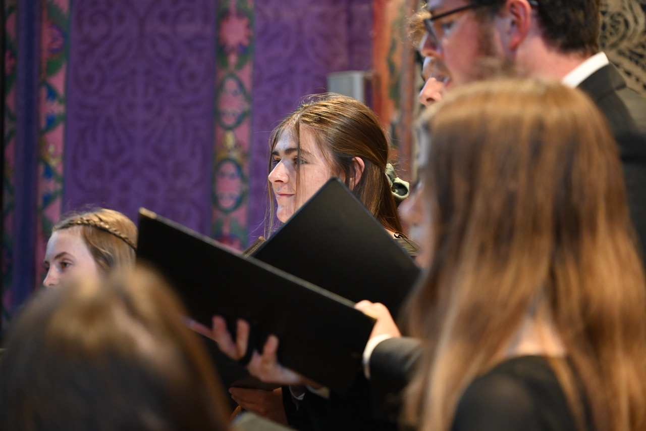 Chór składa się ze studentów-wokalistów, którzy z pasją wykorzystują muzyczne talenty, by służyć innym, a także czcić Boga. Poprzez utwory chóralne, pieśni religijne, repertuar klasyczny oraz muzykę uwielbieniową, chce stworzyć przestrzeń, w której serca mogą być podniesione na duchu. – Pierwszy utwór – pełen pokoju i modlitwy – jest nawiązaniem do Psalmu 42, w którym odkrywamy słowa: „Jak łania pragnie wody ze strumieni, tak dusza moja pragnie Ciebie, Boże!” – dodała dr Mia Oh. Jeden z zaprezentowanych utworów wybrzmiał w języku polskim.