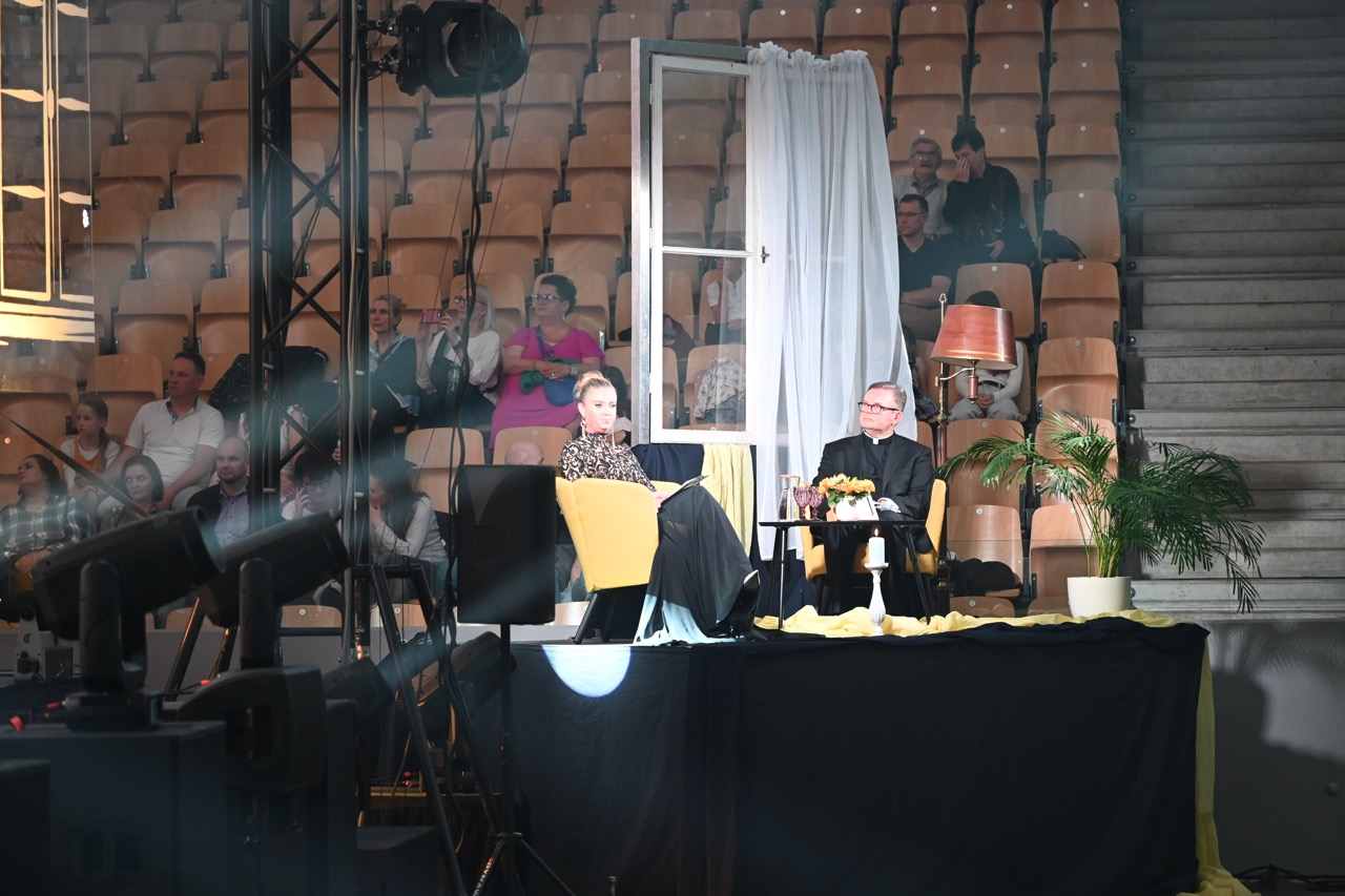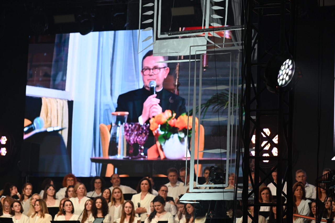 Podczas koncertu dialog między sobą prowadzili korespondentka EWTN, Magdalena Wolińska-Riedi i naoczny świadek odchodzenia papieża do Domu Ojca, ks. prałat Paweł Ptasznik. – Ojciec Święty właściwie od początku swojego kapłaństwa był nastawiony na poszukiwanie drugiego człowieka i to nie tylko w sensie fizycznym. On starał się go zrozumieć. Zawsze wychodził od poszukiwania Boga, chcąc Go nieć temu człowiekowi na różne sposoby – powiedział ks. prałat Paweł Ptasznik.