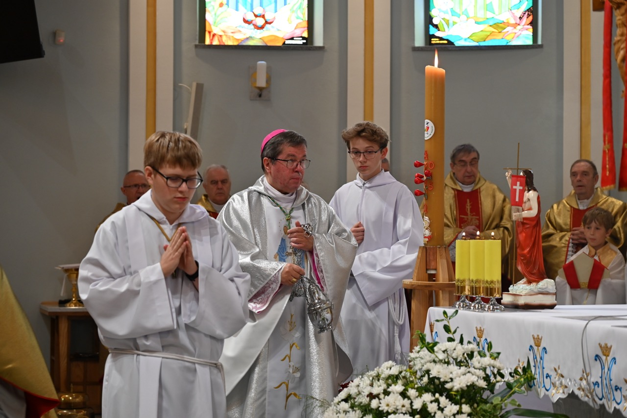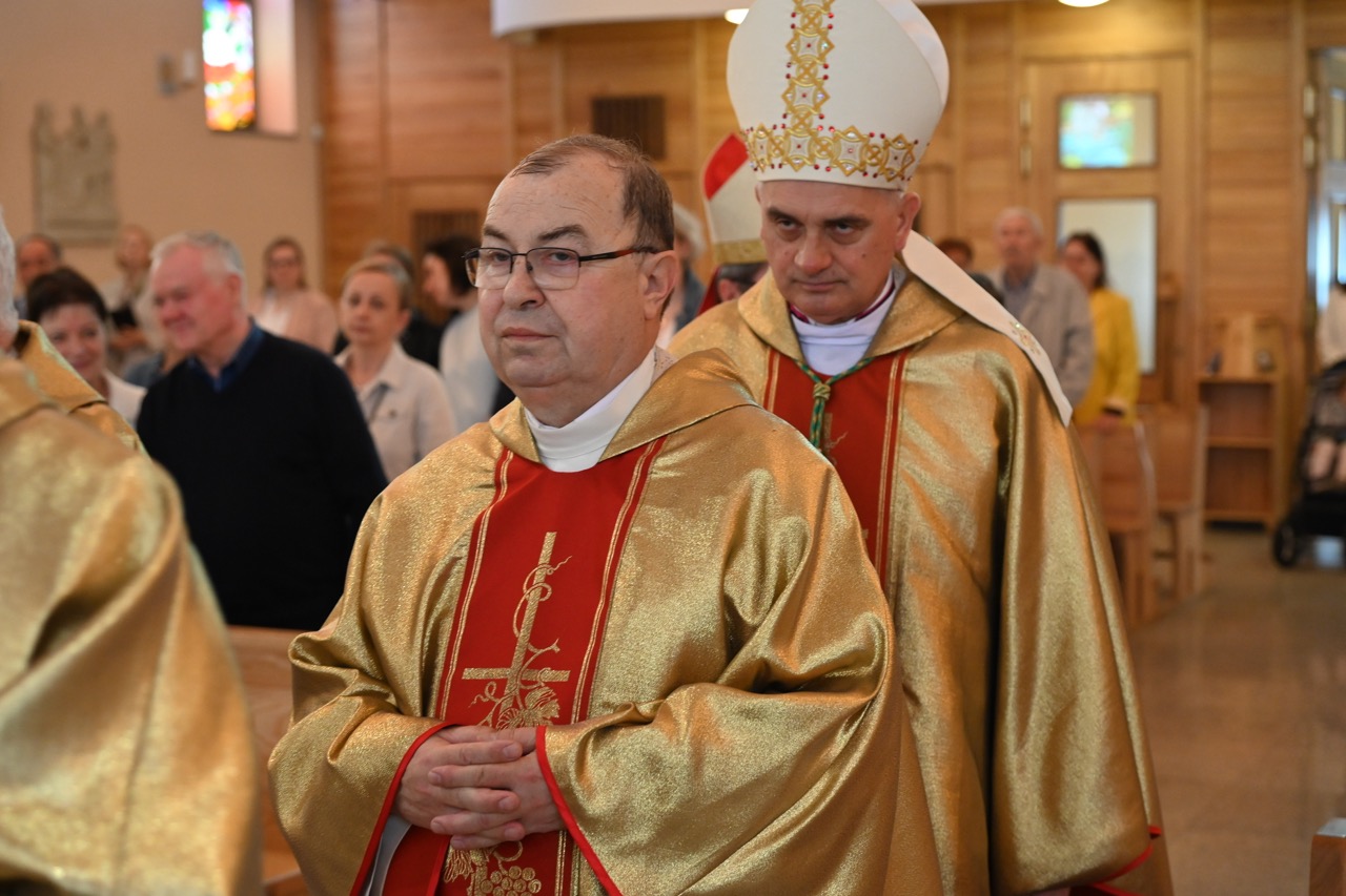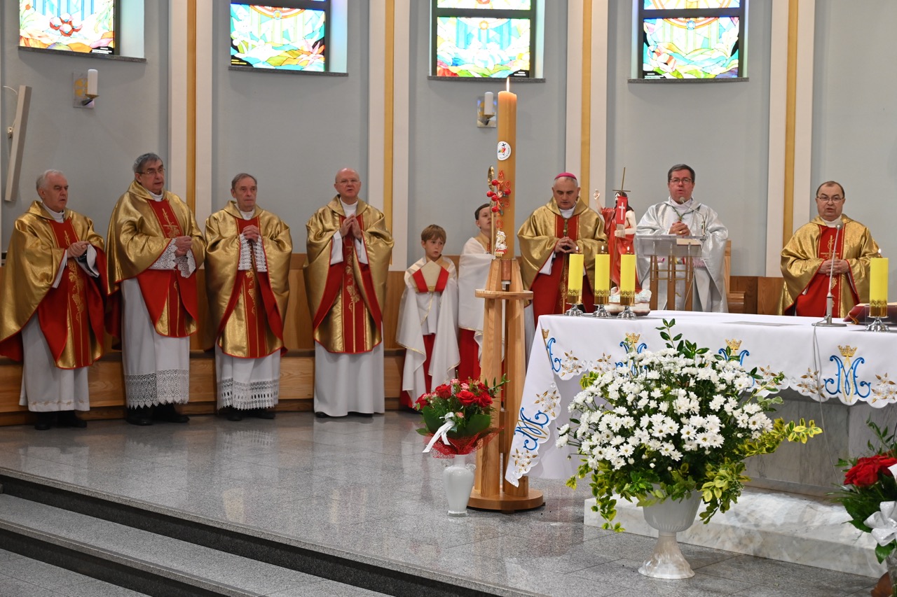 Na zakończenie abp wspomniał zmarłych kolegów i tych, którzy odłączyli się od kapłaństwa, prosząc o modlitwę za wszystkich. – Moi drodzy, pewnie trochę dziwne to jubileuszowe rozważanie. Kieruję je najpierw do siebie i dzielę się z wami. Ukochajmy perspektywę Nieba, zechciejmy coś pozmieniać, zresetować, być jeszcze aktywnymi i radosnymi sługami Jezusa – zakończył, dedykując słowa św. Matki Teresy z Kalkuty. – To okazja, by nasi „czterdziestolatkowie” dziękowali za inicjatywę, którą wykazał Pan Jezus – Dobry Pasterz. On był pierwszy, to Jego dar, na który odpowiedzieliście – dodał bp Krzysztof Włodarczyk. – Dziękujemy za owoce służby kapłańskiej na niwie parafii. Możemy zapewnić naszego proboszcza, cytując księdza arcybiskupa, „nie żałujemy, że mamy takiego księdza” – podsumowała przedstawicielka parafian.