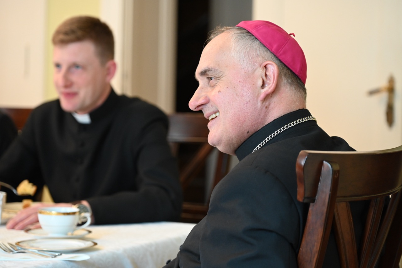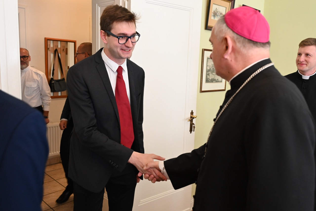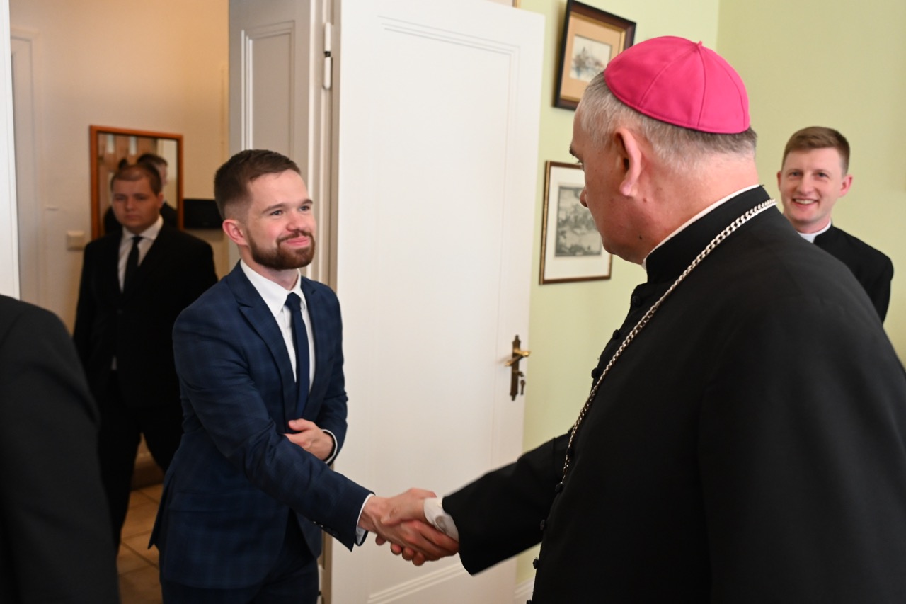 Dom pasterza diecezji odwiedzili moderatorzy i alumni Arcybiskupiego Seminarium Duchownego w Poznaniu, którzy przeżywają swój okres propedeutyczny w Kaliszu. – Dzisiaj czuję, że ten proces wciąż we mnie trwa, a Duch Święty pomaga mi go rozwijać. Każde powołanie ma swój czas – dodał kleryk Adrian Stróż.