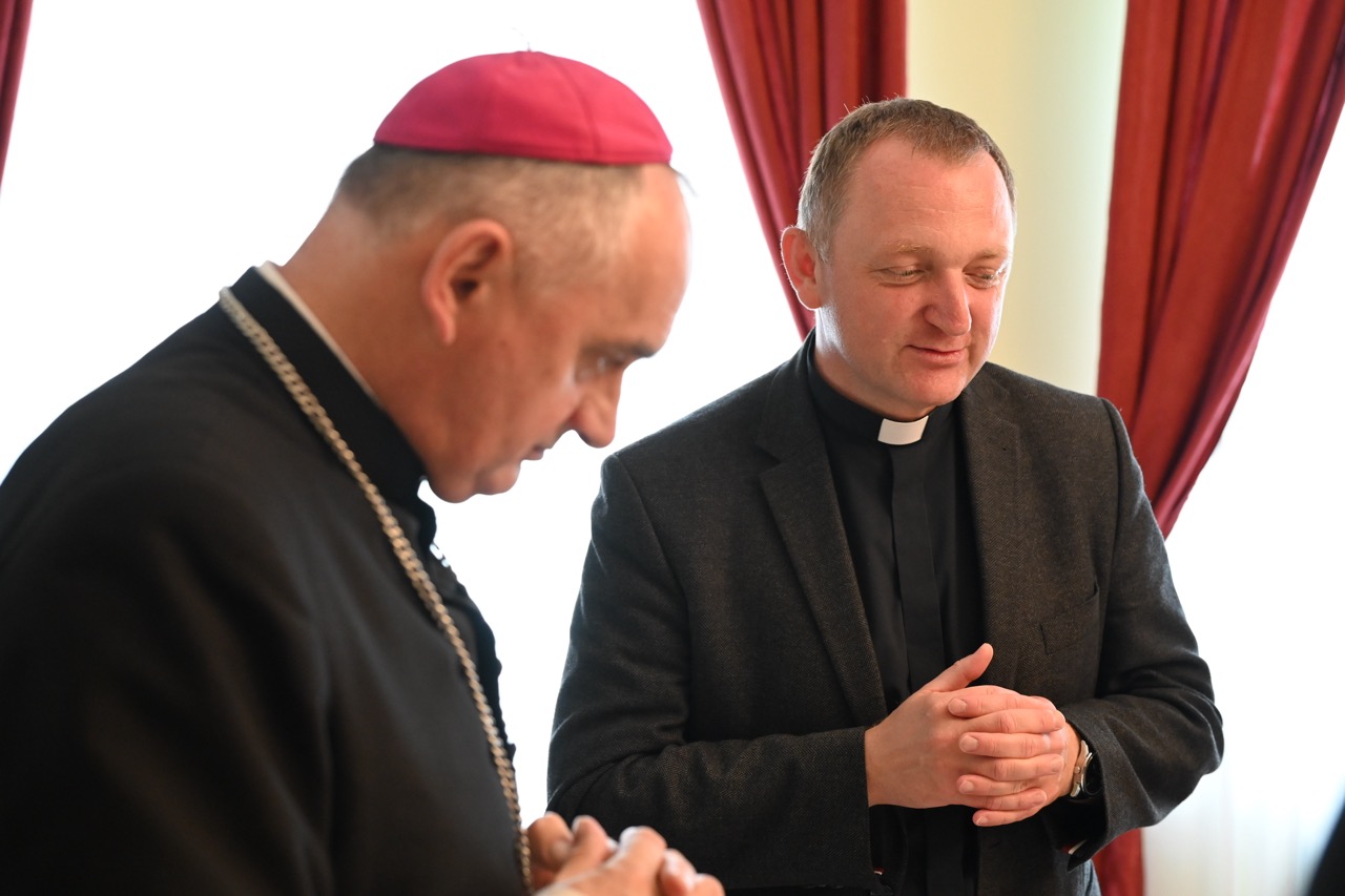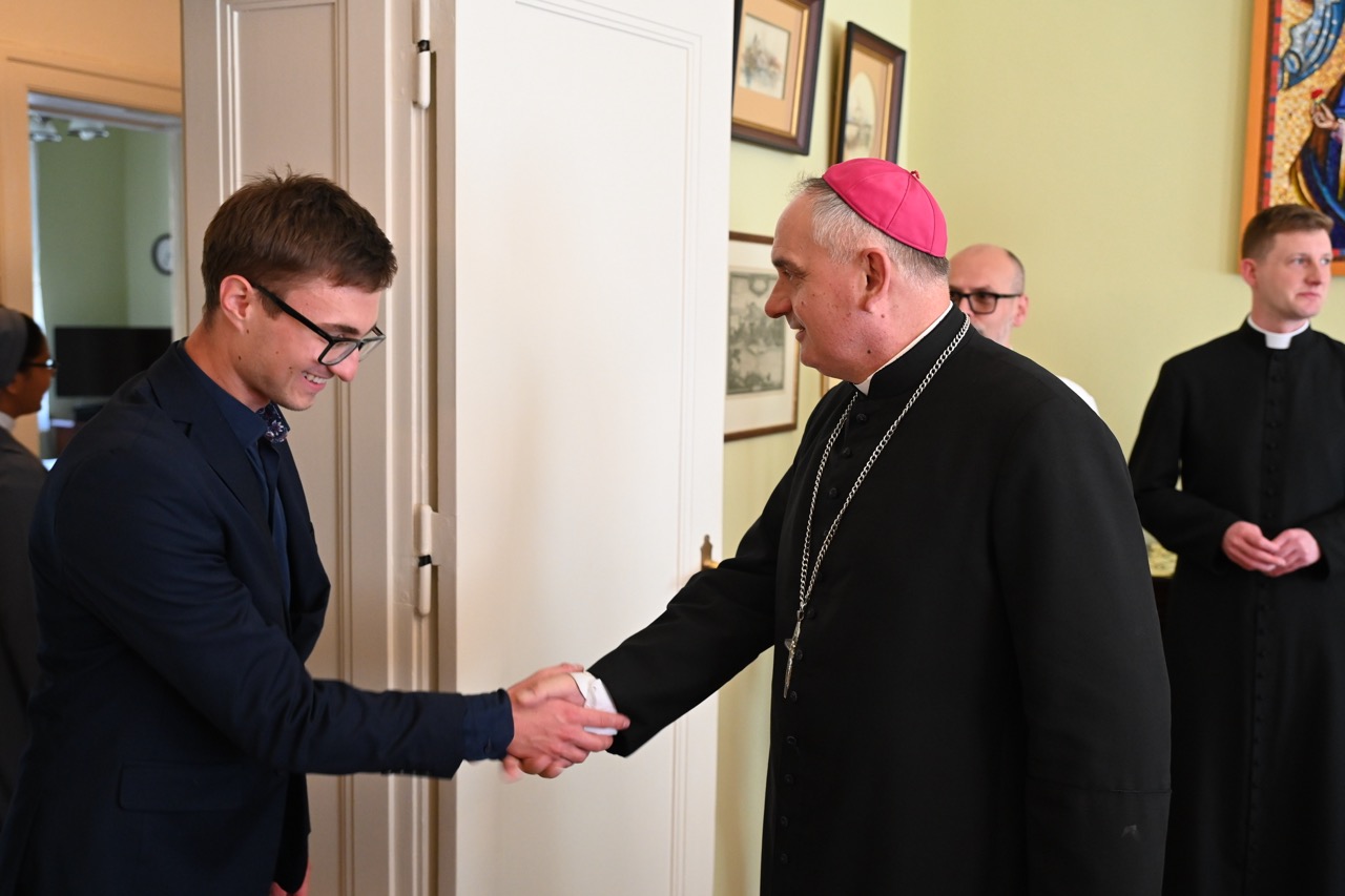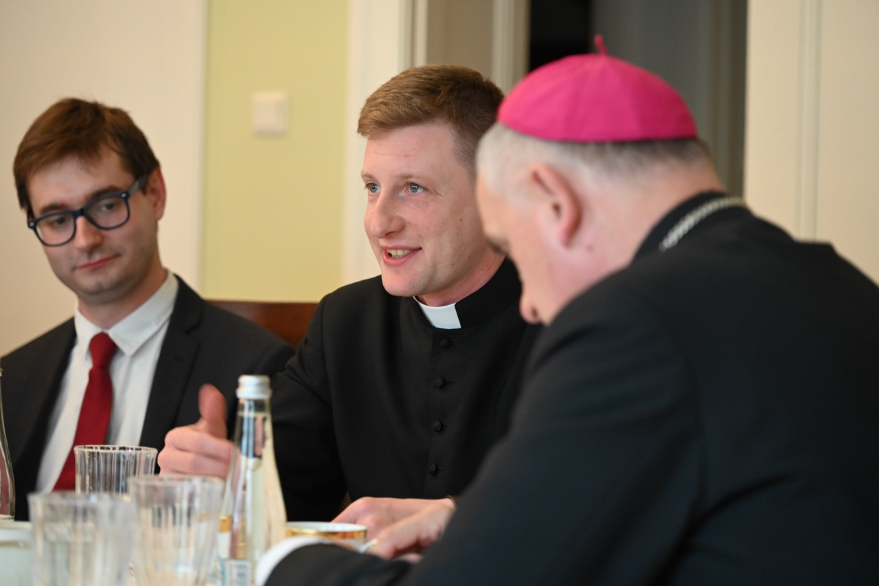 Dom pasterza diecezji odwiedzili moderatorzy i alumni Arcybiskupiego Seminarium Duchownego w Poznaniu, którzy przeżywają swój okres propedeutyczny w Kaliszu. – Dzisiaj czuję, że ten proces wciąż we mnie trwa, a Duch Święty pomaga mi go rozwijać. Każde powołanie ma swój czas – dodał kleryk Adrian Stróż.