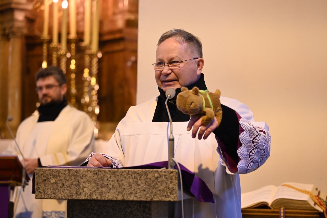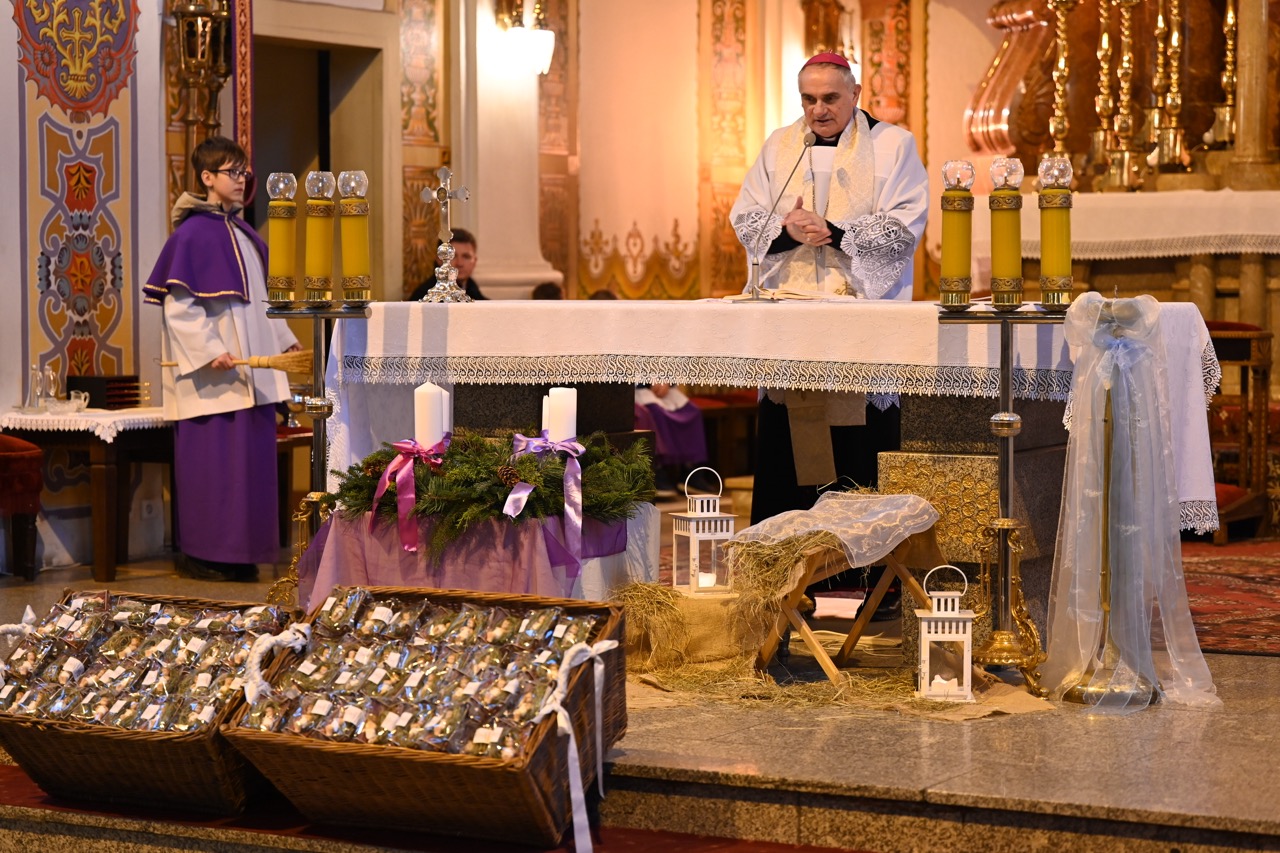 W kościele były obecne dzieci z różnych stron diecezji. Figurki poświęcił bp Krzysztof Włodarczyk. – To „Bambinelli”, dzieciątko, jest dla nas. Tak, jak niemowlę nie używa języka, tak ten „Bobas” bardzo do nas przemawia. Jezus przyszedł do każdego, jest dla nas. Z tego żłóbka mówi, że każdego do końca umiłował. Tak, jak do małego dziecka, możemy się mocno do Niego przytulić. On kocha, zachęca, by Go się nie bać, ale podejść – powiedział biskup bydgoski.