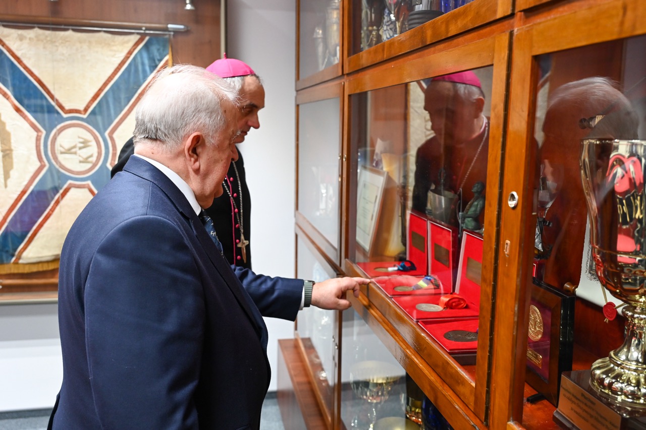 Spotkanie miało szczególny charakter także ze względu na pierwszą wizytę biskupa bydgoskiego w tym miejscu. Była ona okazją m.in. do obejrzenia medali olimpijskich, a także do krótkiego spotkania z zawodnikami trenującymi na sali, w tym z mistrzynią olimpijską Magdaleną Fularczyk-Kozłowską. – Dziękuję księdzu biskupowi za słowo Boże. Ogromnie się cieszę, że jesteśmy razem. Weźmy do rąk biały opłatek i się nim podzielmy” – mówił Zygfryd Żurawski, prezes Zarządu Kujawsko-Pomorskiej Rady Olimpijskiej.